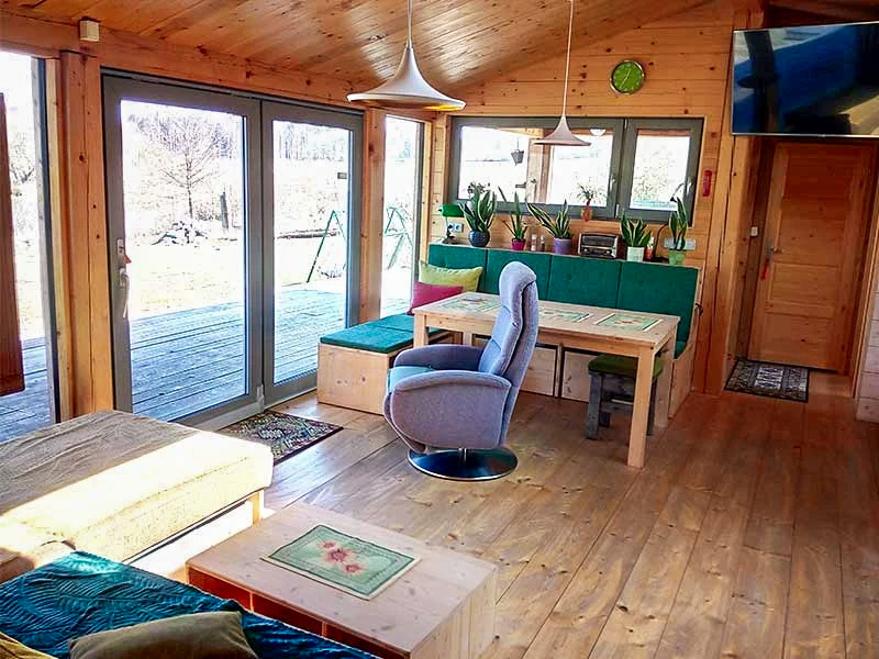 Ubytování je řešeno variabilně podle počtu hostů a nabízí několik verzí od 1 až po 12 a více osob. K dispozici je zadní menší část pro 1–4/5 osob, rozšířená varianta až pro 7 osob se samostatným pokojem, přední větší část pro 1–6/8 osob a také možnost pronájmu celého objektu. Výhodou je, že bez ohledu na zvolenou variantu mají hosté vždy zajištěné soukromí – objekt je pronajímán pouze jedné skupině.