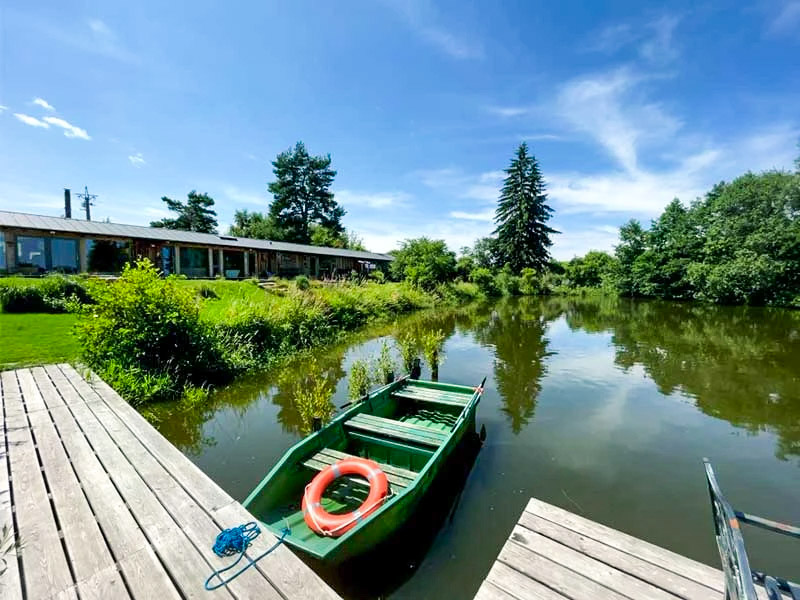Obě části jsou oddělené bez společných prostor, ale hosté mohou využívat celý pozemek včetně zázemí u rybníka vzdáleného přibližně 10 metrů. Samozřejmostí je Wi-Fi, parkování, venkovní posezení i dostatek vybavení pro pohodlný pobyt. Vytápění je řešeno elektrickými radiátory s možností regulace v jednotlivých místnostech.