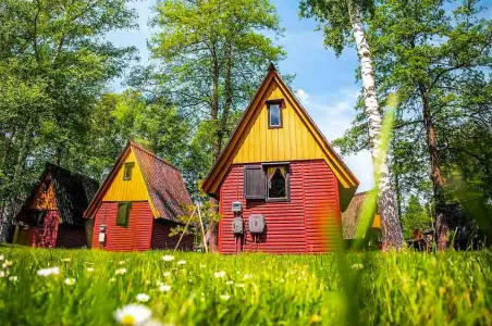 Kemp Sluníčko ve Starých Splavech je oblíbeným místem pro letní dovolenou u Máchova jezera, které láká svou polohou přímo u Nového rybníka a jen pár minut chůze od pláží. Areál tvoří 30 chatek s celkovou kapacitou až 120 osob, což z něj dělá ideální volbu pro rodiny s dětmi, skupiny přátel, školní výlety, dětské tábory nebo firemní akce. Chatky jsou jednoduché, ale útulné – každá nabízí čtyři lůžka (dvě v přízemí a dvě v podkroví), vlastní malou terasu, chladničku, ventilátor, zásuvky a Wi-Fi připojení. Novinkou posledních let je možnost ubytování v pravých indiánských tee-pee stanech pro čtyři dospělé nebo šest dětí, které přinášejí autentický zážitek a dobrodružný prvek do pobytu. Pro hosty, kteří dávají přednost většímu komfortu, jsou připraveny i malé dvoulůžkové apartmány s vlastní kuchyňkou. Novinkou kromě apartmánu je také chatka Bazén, která v sobě má jednu manželskou postel.