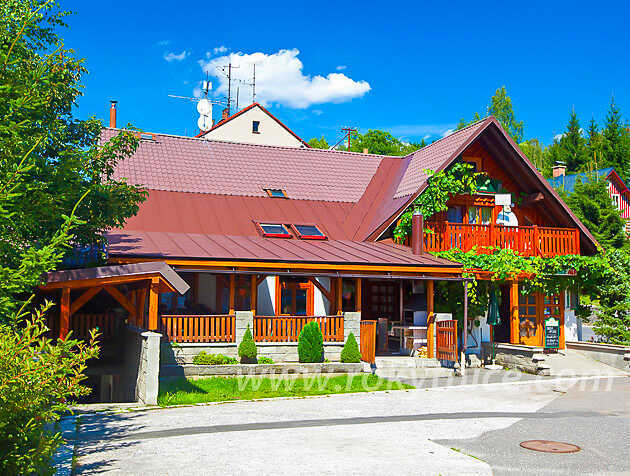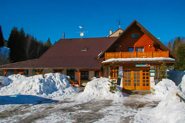 Autem dojedete až k penzionu a parkovat můžete celoročně přímo u budovy.
