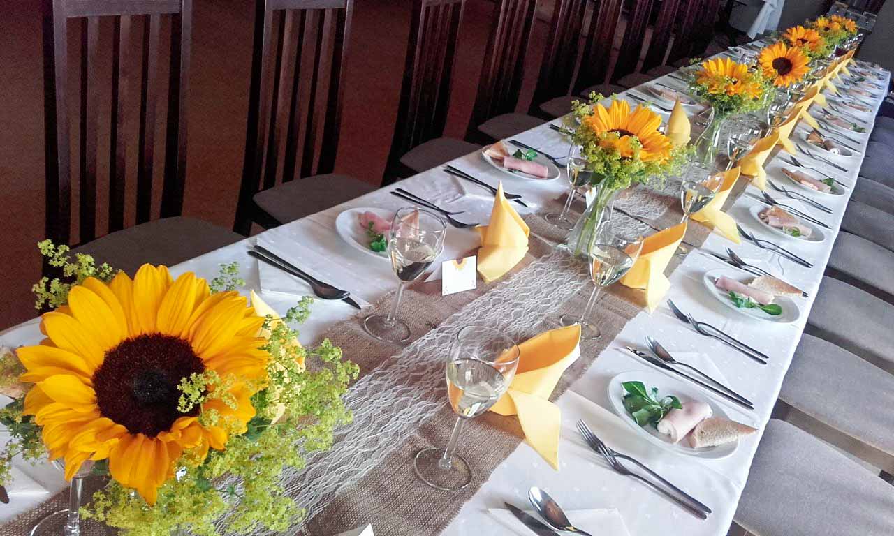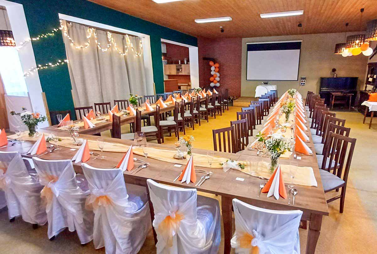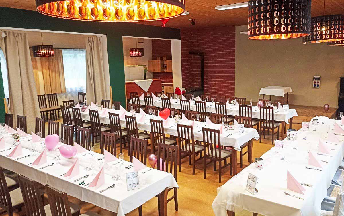 Penzion Slunečno je vhodný nejen pro rodinné pobyty, ale i pro svatby, firemní akce, plesy či školení. K dispozici je salonek pro cca 30 osob a velký sál s kapacitou až 120 osob (při plesech až cca 180 míst). Zajištěn může být kompletní catering, rauty, servírovaná menu i doprovodný program.
