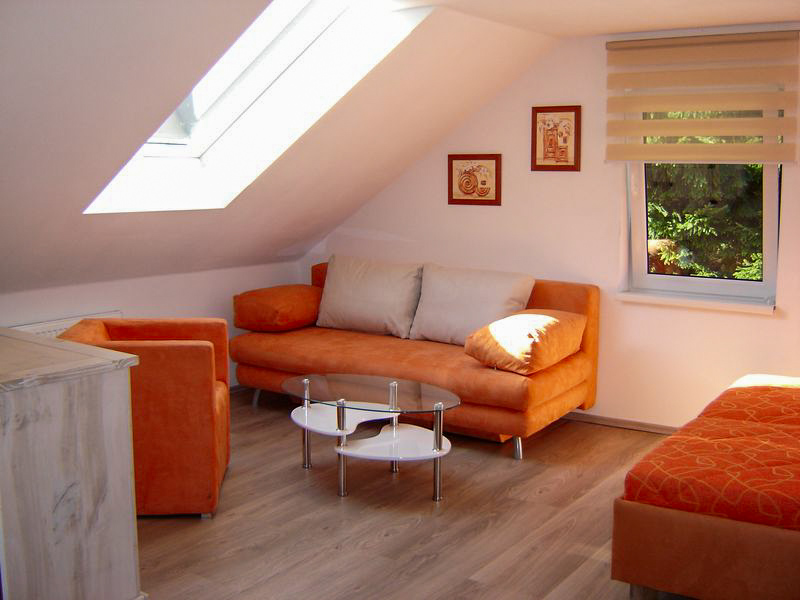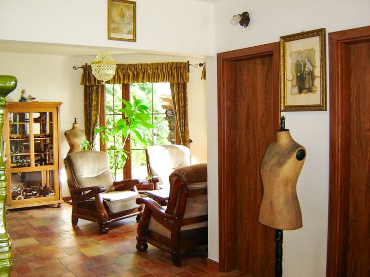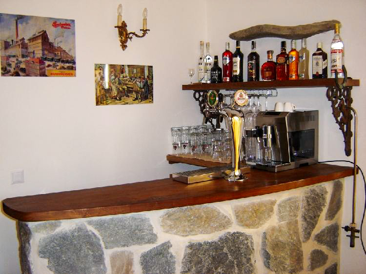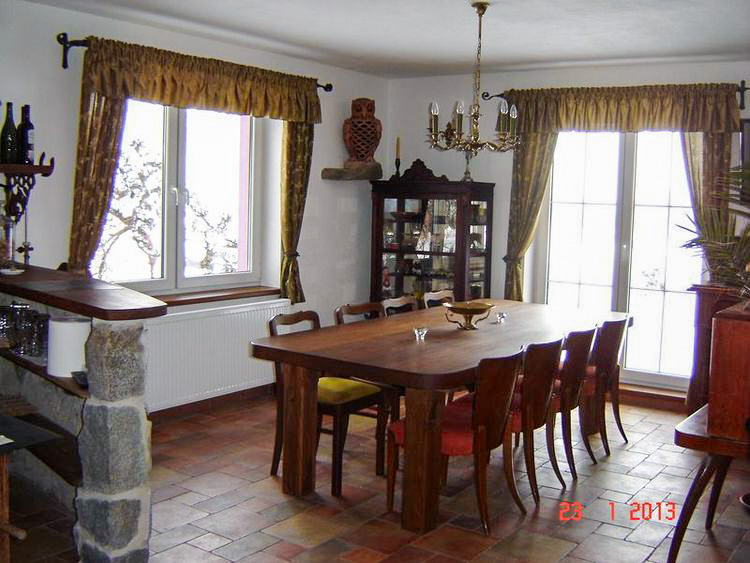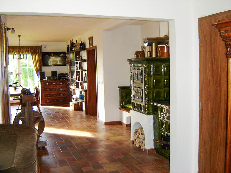 V přízemí penzionu se nachází velká, stylově zařízená společenská místnost s kachlovými kamny a příjemným posezením, která je ideální pro setkání všech hostů.