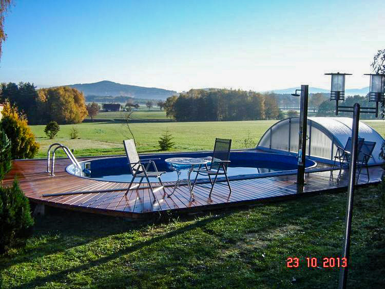 Krytý bazén s pískovou filtrací (v provozu od června 2025).
