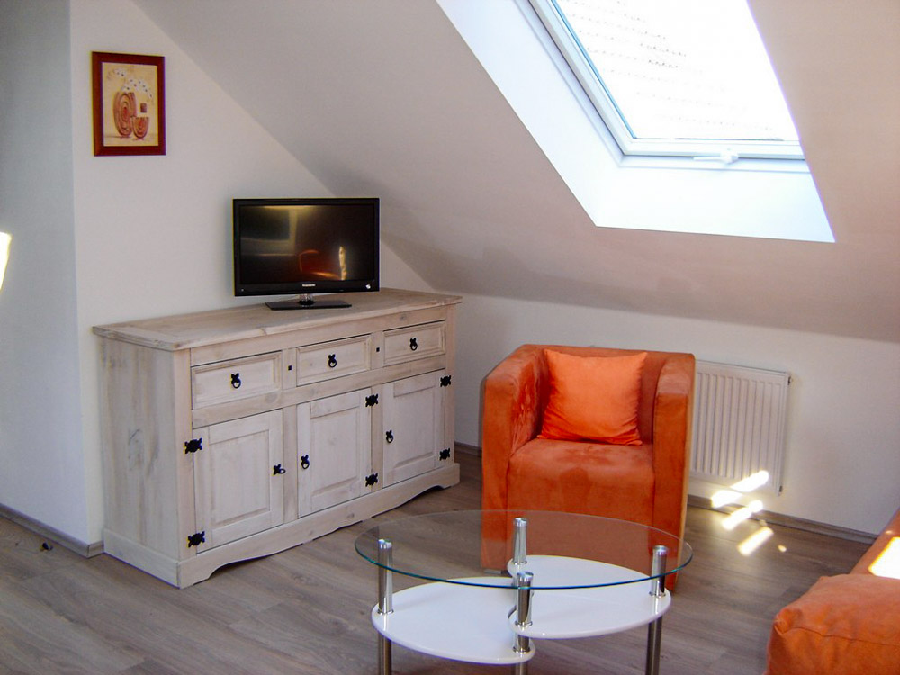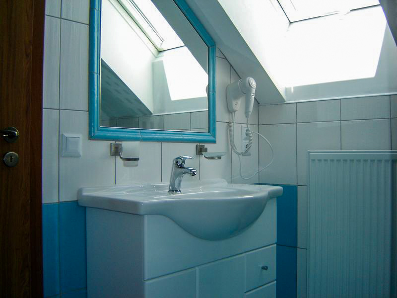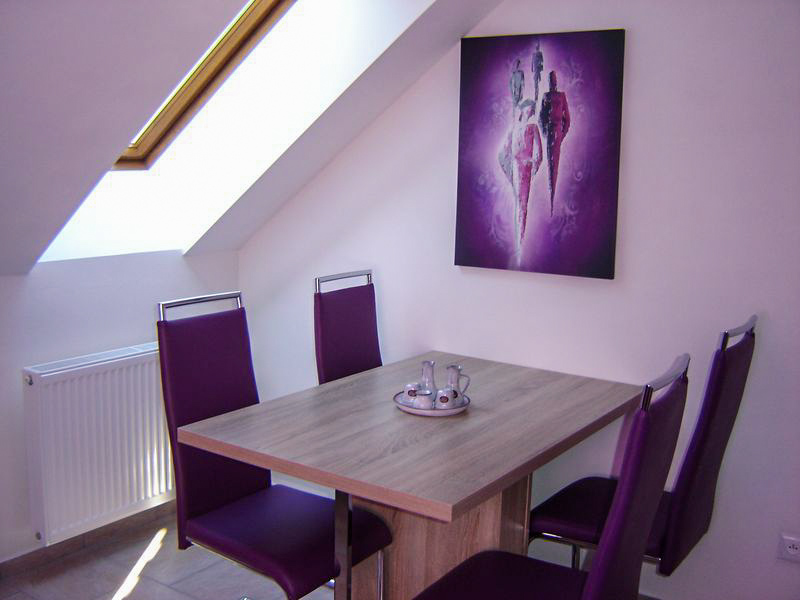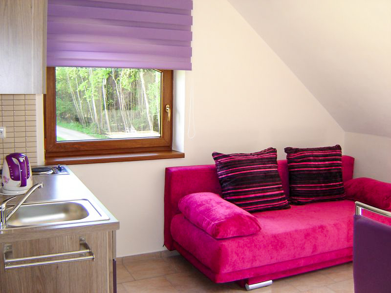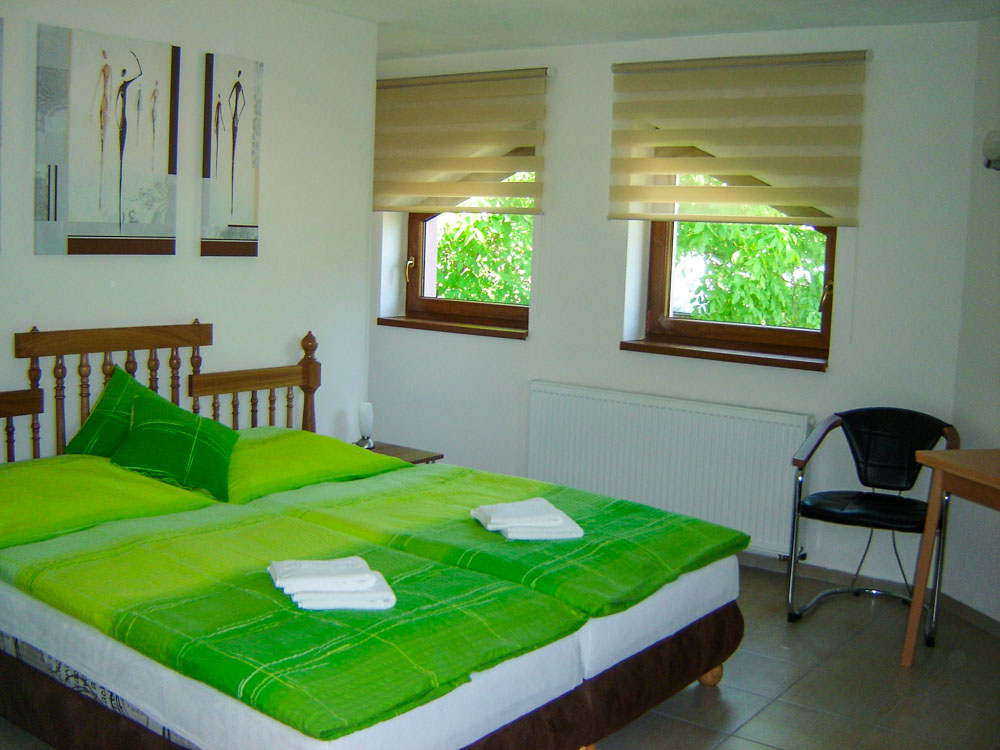 Apartmán 3 (pro 2 osoby): Jedna ložnice, vlastní koupelna a kuchyňský kout.