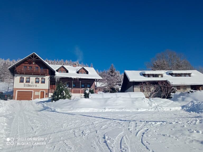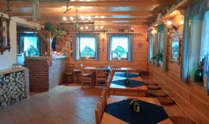 Srdcem penzionu je velká společenská místnost s barem a restaurací, kde si hosté vychutnají snídaně i večeře a mohou trávit příjemné večery. K dispozici je také venkovní bazén, ohniště a posezení, které vybízí k relaxaci po dni stráveném na horách. Nechybí ani praktické zázemí, jako je parkování u objektu nebo úschovna kol a lyží.