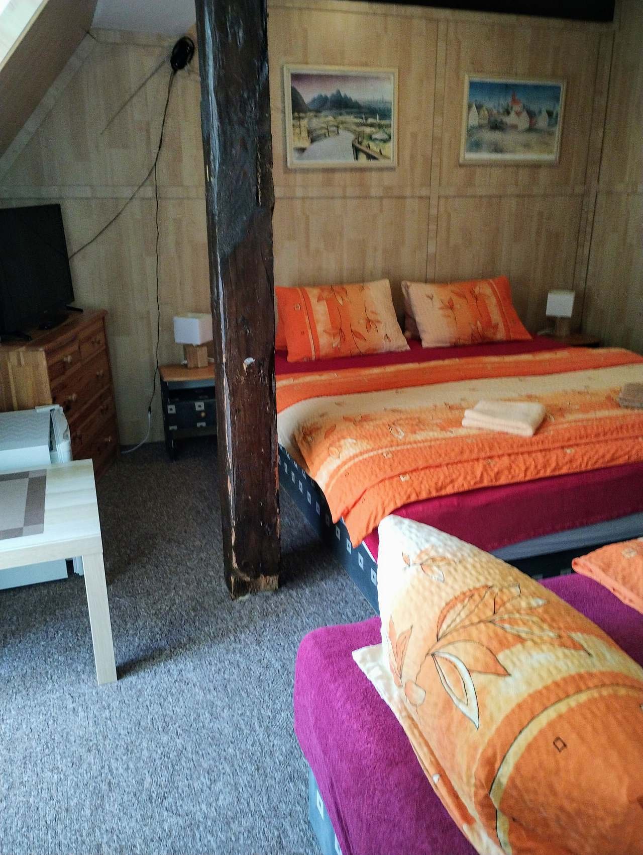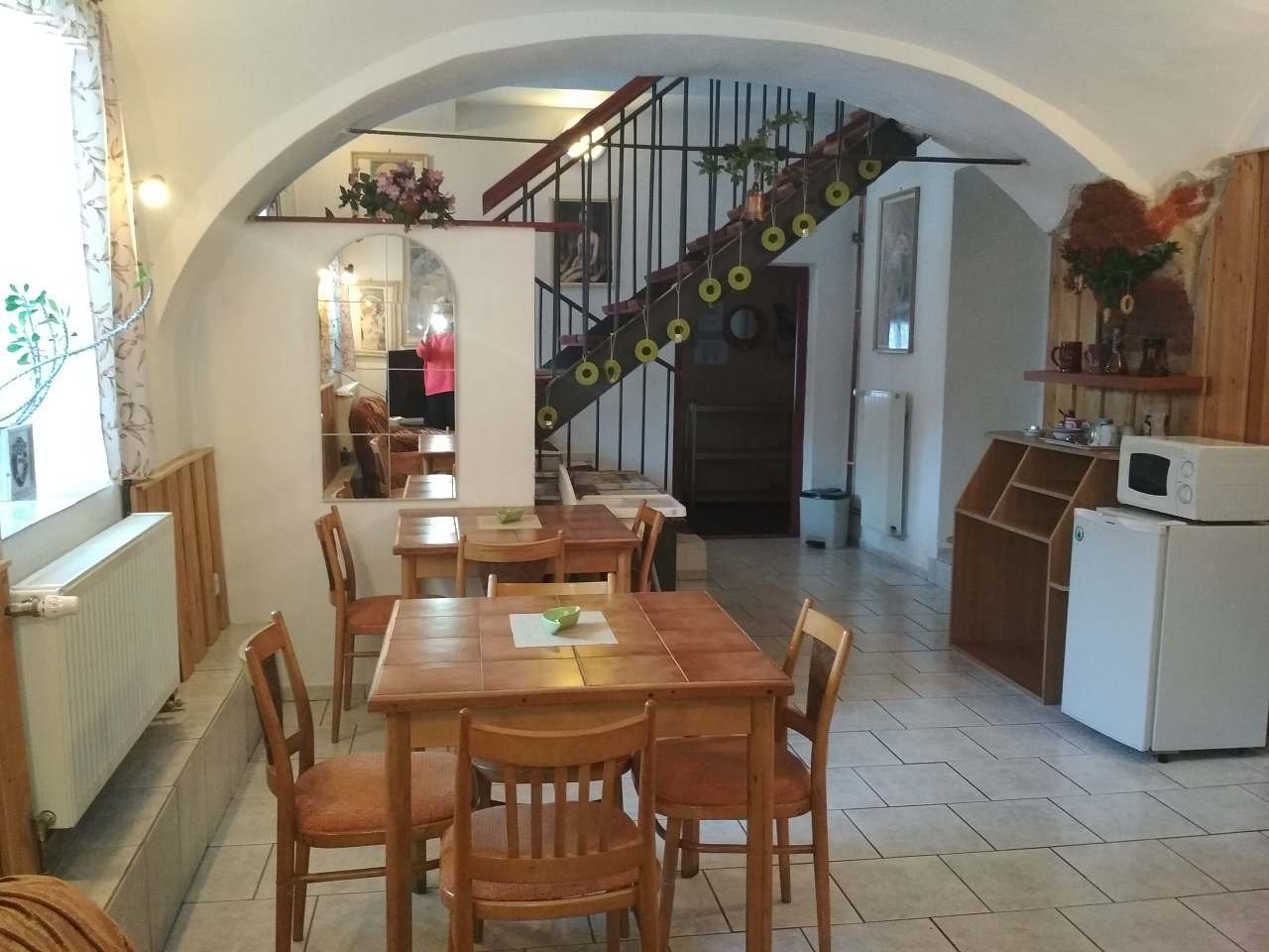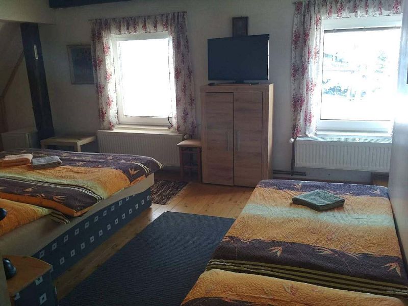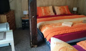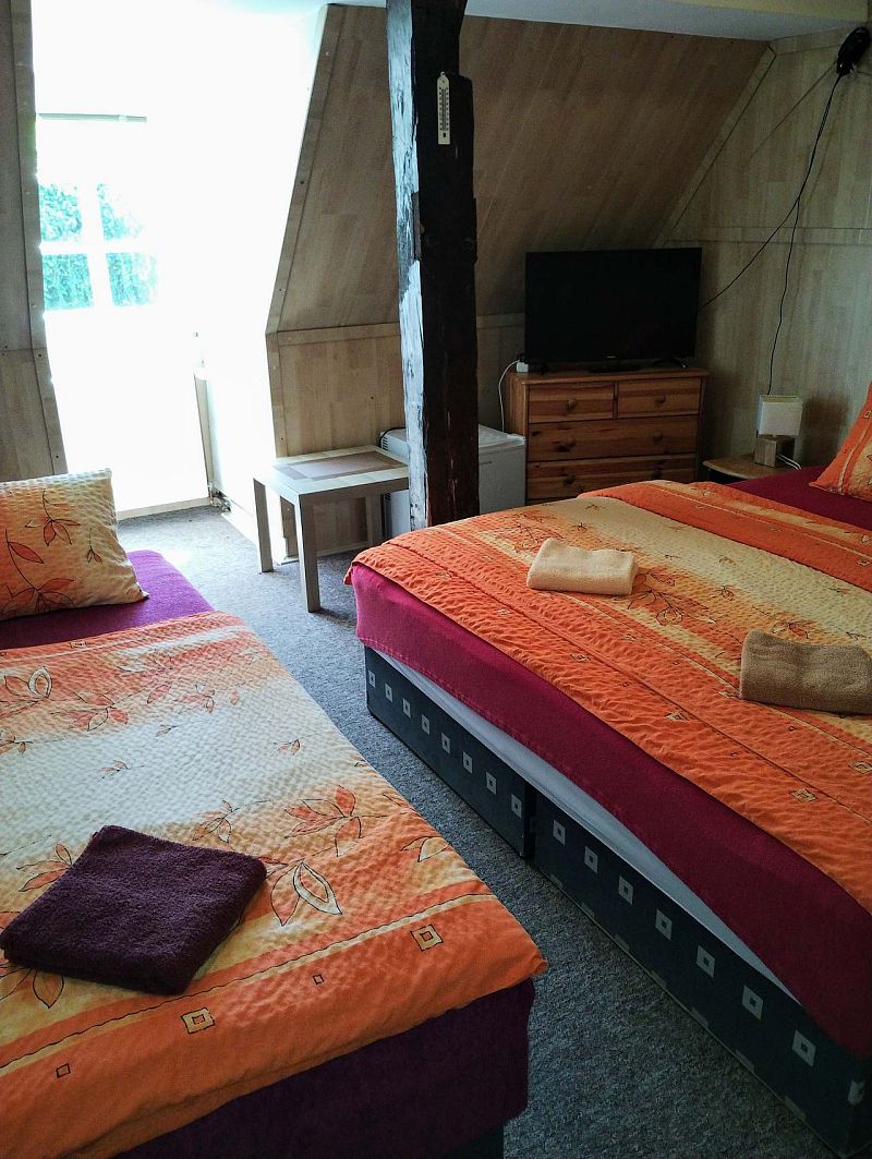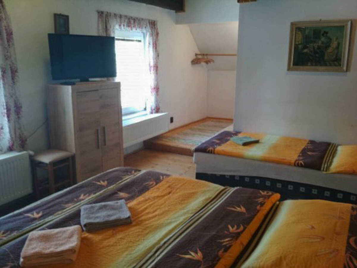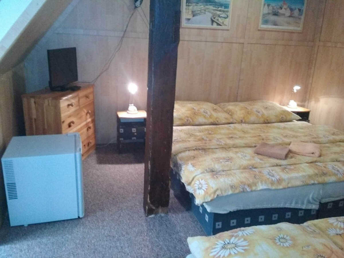 Penzion Kučera v Dolní Moravici nabízí komfortní ubytování s rozsáhlým vybavením, které vyhoví rodinám s dětmi, aktivním turistům i skupinám přátel. Součástí penzionu je prostorná společná kuchyň, plně vybavená pro vlastní vaření – nechybí varná deska, lednice, mraznička, mikrovlnná trouba, rychlovarná konvice ani dostatek nádobí. K pohodlnému trávení volného času slouží společenská místnost s posezením, televizí a možností využít ji jak k odpočinku, tak ke společným večerům v přátelské atmosféře. Velkou předností penzionu je také venkovní vyhřívaný bazén, který poskytuje příjemné osvěžení a relaxaci po dni stráveném na horách. Pro rodiny s dětmi je připravena herna vybavená hračkami a stolem na stolní tenis, takže i při horším počasí se děti skvěle zabaví. Venkovní část nabízí místo na posezení a odpočinek. K dispozici je zahrada s lehátky, terasa s posezením a pergola vybavená venkovním grilem – ideální prostředí pro letní večery nebo grilování. Samozřejmostí je úschovna lyží a kol, Wi-Fi připojení v celém objektu a parkování přímo u penzionu. Pokoje jsou zařízeny tak, aby hostům poskytly co největší pohodlí. K dispozici je čtyřlůžkový a třílůžkový pokoj vždy s vlastním sociálním zařízením, čistým a prakticky řešeným interiérem a dostatkem úložných prostor. Každý pokoj je vybaven pohodlnými postelemi, televizí, nočním stolkem, židlí a chladicím boxem pro příjemný pobyt po celý rok. Díky kvalitnímu zázemí a širokým možnostem vyžití v objektu je penzion vhodnou volbou pro delší rodinné dovolené, sportovní pobyty, klidné víkendy i společné akce.