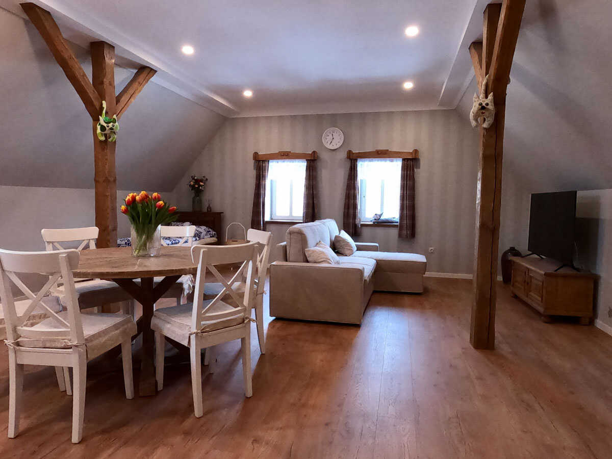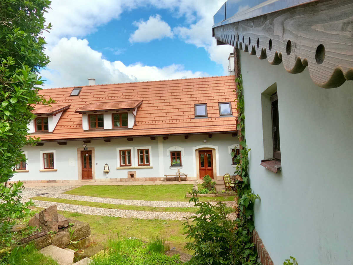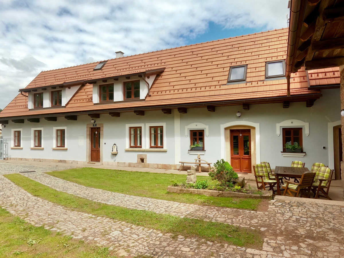 Stylové apartmány v městečku Pecka s bazénem, koupacím sudem, saunou, společenskou místností a velkou zahradou. Skvělé pro rodiny, skupiny i relax v přírodě. celý popis