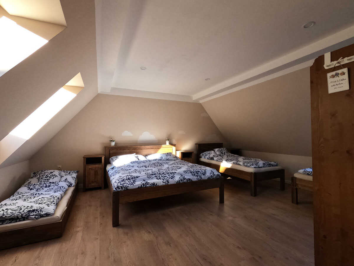 Součástí penzionu jsou také dvě společenské místnosti – krbovna s výčepním zařízením a kuchyňkou, a klubovna s infrasaunou, odpočívárnou a pingpongovým stolem. Tyto prostory jsou ideální pro skupinová setkání, herní večery nebo odpočinek po výletech. Parkování je možné přímo u objektu – místa je dostatek na dvoře, na zahradě i před garáží.