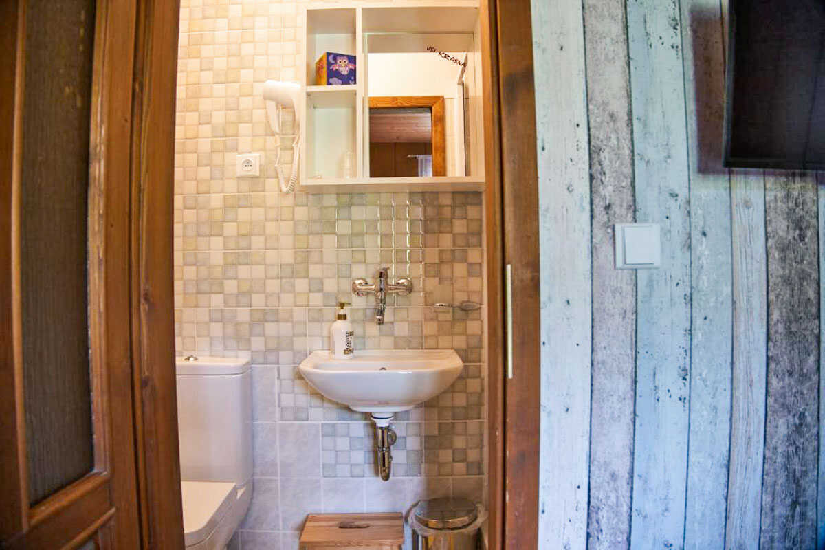 Každý pokoj má vlastní koupelnu se sprchovým koutem a WC, což zaručuje dostatečné pohodlí a soukromí i při delším pobytu. Samozřejmostí je televize a bezplatné Wi-Fi připojení na všech pokojích. Penzion je plně nekuřácký a vzhledem k provozním podmínkám neumožňuje ubytování domácích zvířat.