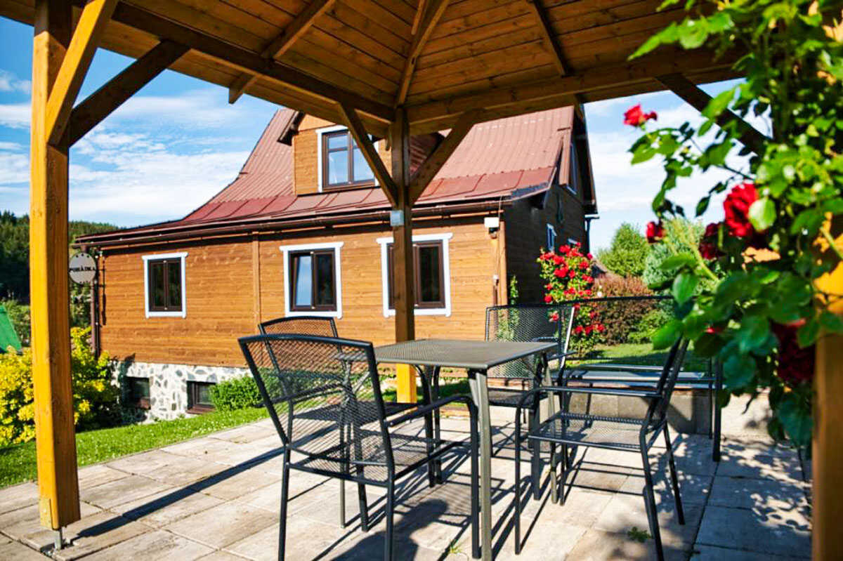 Součástí objektu je lyžárna, úschovna kol i vysoušeč obuvi — praktické vybavení zejména pro zimní sporty a letní cykloturistiku. Parkování je zajištěno přímo u penzionu, takže hosté mohou pohodlně přijet i v zimních měsících. Celkově působí Penzion Pohádka velmi útulně a díky rodinné atmosféře je vhodný jak pro páry, tak pro menší skupiny nebo rodiny hledající klidné ubytování s perfektním umístěním.