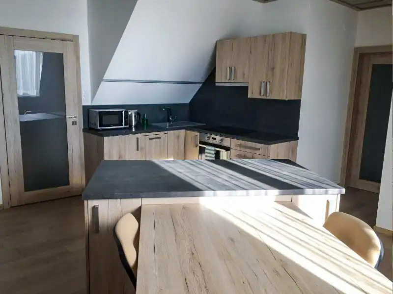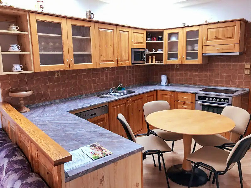 Ubytovací jednotky jsou postavené hlavně na dobře vybavených kuchyních a dostatku prostoru. V apartmánech je kuchyně standardně připravená na běžné vaření i delší pobyty – k dispozici bývá sporák a trouba, mikrovlnná trouba, kávovar, rychlovarná konvice, lednice a kompletní nádobí, u vybraných apartmánů také myčka. Nechybí ani základní drobnosti pro každodenní použití, jako káva, čaj, cukr a základní koření. Koupelny jsou řešené podle typu apartmánu – se sprchovým koutem nebo vanou, samozřejmostí jsou ručníky a fén; u varianty „Výhled“ jsou k dispozici dvě koupelny. Klimatizaci lze v některých apartmánech zajistit na vyžádání.
