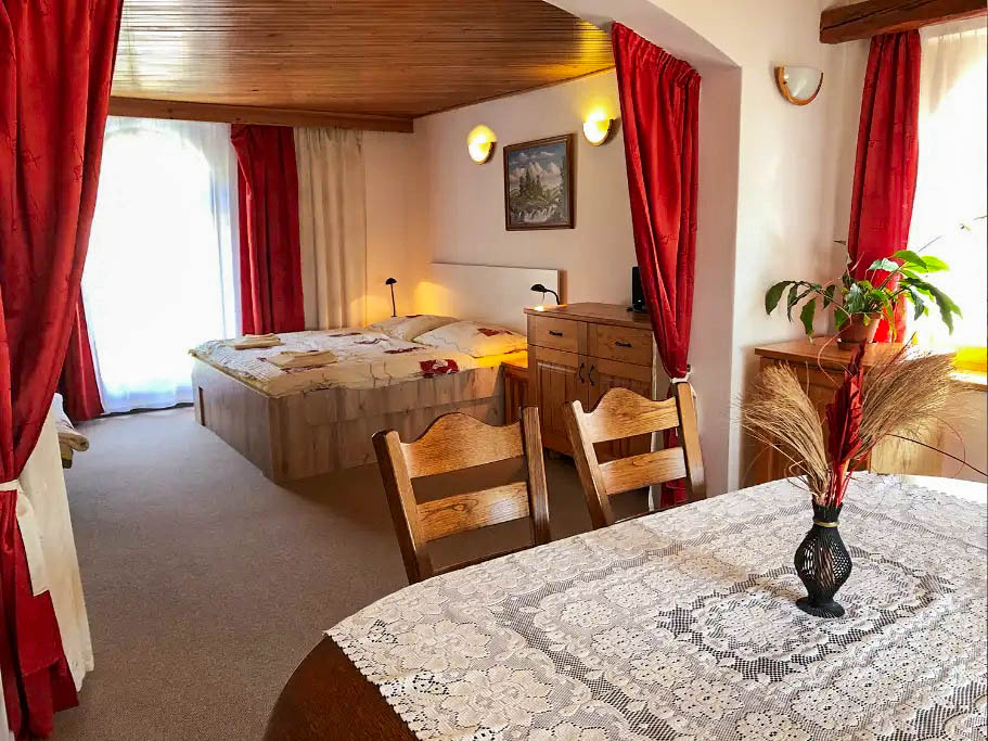 Konkrétní typy ubytování pokrývají různé potřeby od párů po větší skupiny. Apartmán VLASTA (až 4 osoby) má vlastní kuchyni, zastřešené zahradní posezení se vstupem na zahradu, krb a možnost grilování. Podkrovní apartmán (pokoje KAMILA, ALENA a LADA) je největší, až pro 8 osob, s prostornou kuchyní a koupelnou s vanou. Apartmán s mezonetem (pokoje MARIE a ZDENA) je do 5 osob, se sprchou a kuchyní. Apartmán PAVLA (až 6 osob) přidává velkoplošnou projekci se zvukem 5.1; jeho kuchyně je umístěná v suterénu a je vybavená včetně mrazáku. Pokoj HANA je útulný přízemní apartmán pro 2 osoby s vlastní toaletou; sprcha je k využití v areálu SURF clubu cca 190 m od penzionu.