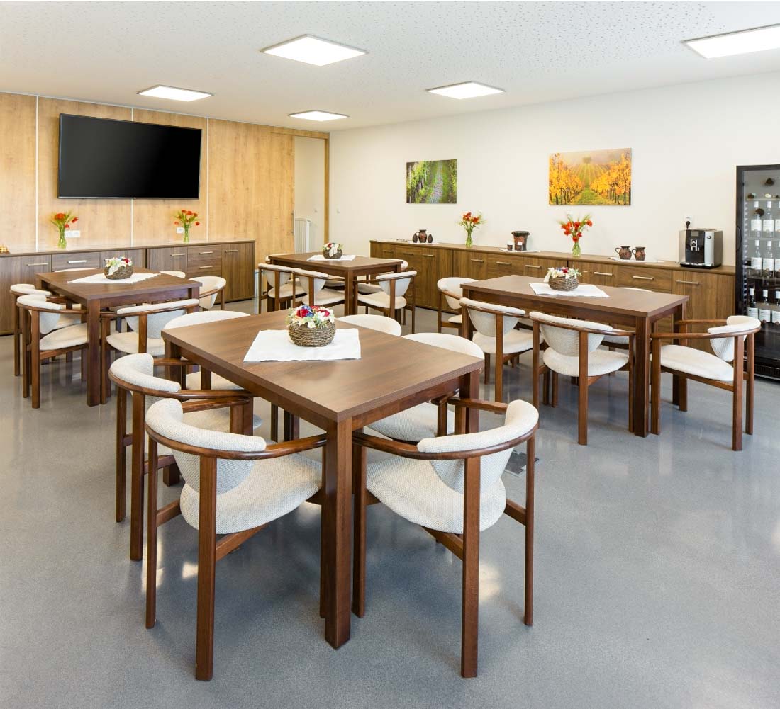 Pro cyklisty a sportovce je připravena krytá úschovna kol s možností dobíjení baterií pro elektrokola a pro volný čas jsou přímo u penzionu k dispozici hřiště na fotbal a petanque. Snídaně jsou zahrnuty v ceně pobytu a mohou být podávány v příjemné společné jídelně, další dobroty či osvěžení si hosté mohou připravit díky samoobslužnému prodeji nápojů a vína z vinotéky přímo v penzionu.