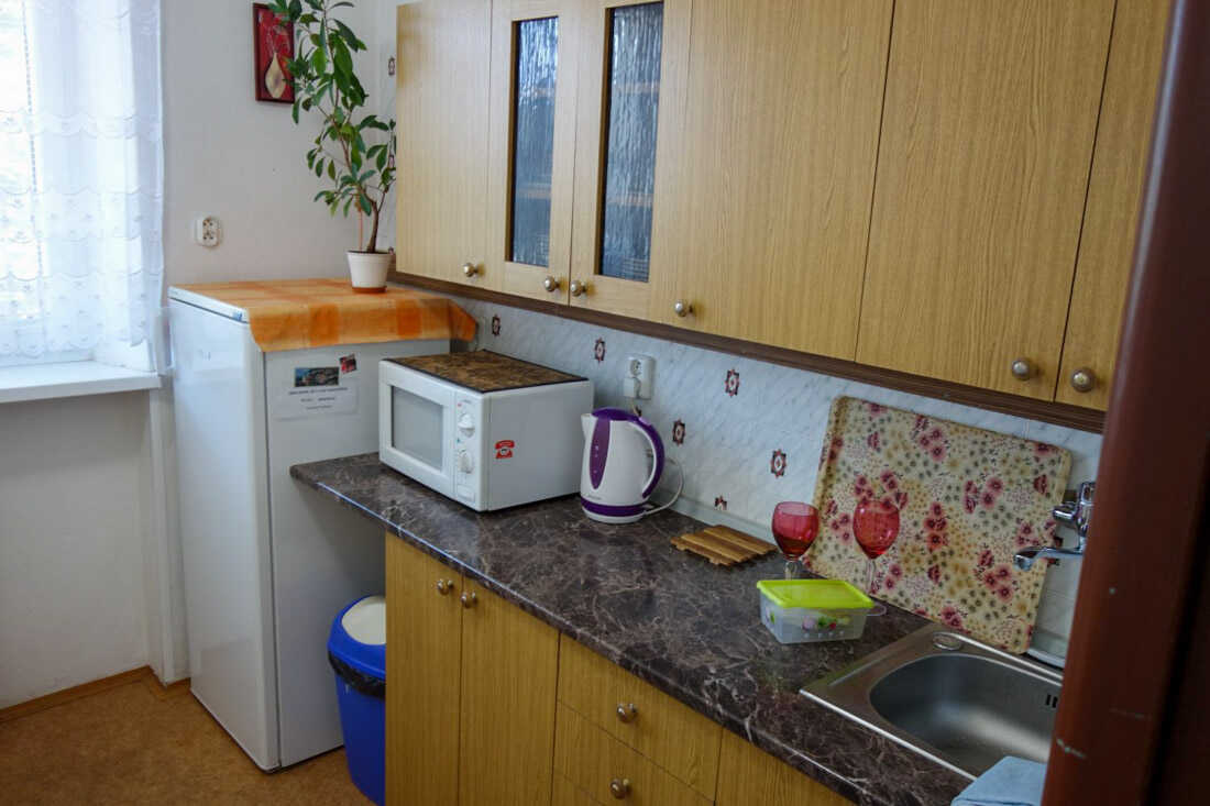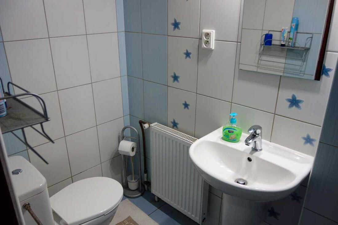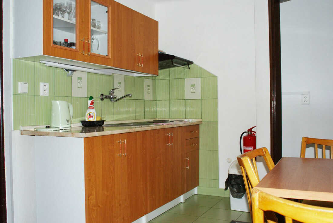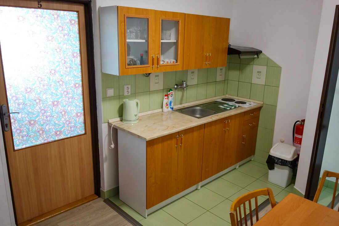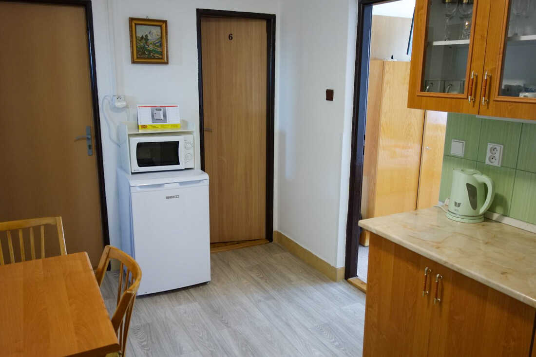 Pro hosty je k dispozici sdílená kuchyně s elektrickou varnou deskou, lednicí, mikrovlnnou troubou, rychlovarnou konvicí a veškerým nádobím. Sociální zařízení je rovněž sdílené a zahrnuje sprchový kout a toaletu, umyvadlo a zrcadlo.