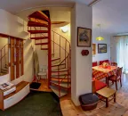 Mezonetový apartmán pro 2-5 osob má prostor členěný na dvě zóny, které jsou odděleny točitým schodištěm, které vede do ložnice v patře. V přízemí je obytná kuchyně s jídelním koutem a koupelna se sprchou a wc. Je odtud přímý vstup do zahrady s vlastní terasou a posezením. V patře je ložnice s dvoupatrovou postelí a samostatnou postelí s výsuvným lůžkem. Jako další přistýlku lze využít rozkládací křeslo v kuchyni.