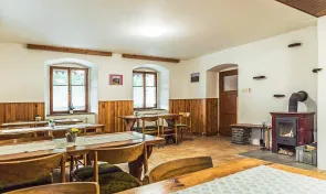 V penzionu se nachází také velká společenská místnost s kapacitou 24 míst, která je vybavena krbovými kamny pro příjemnou atmosféru. Ke společenské místnosti náleží samostatné sociální zařízení (1+1 WC). Hosté mají k dispozici také velkou společnou a plně vybavenou kuchyni, kde nechybí dva sporáky, dvě menší a jedna velká lednice, myčka nádobí, dvě rychlovarné konvice a mikrovlnná trouba. Společenská místnost a kuchyně se samostatnými toaletami jsou vhodné k pronájmu pro pořádání firemních akcí, rodinných oslav nebo svateb. Celý objekt je nekuřácký a nabízí možnost připojení k internetu pomocí Wi-Fi.