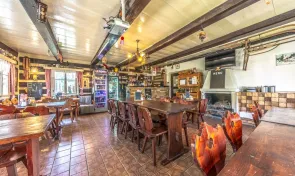 Uvnitř penzionu se nachází prostorná jídelna s barem pro cca 40 osob, společenská místnost s krbem, koženou sedací soupravou a televizí, ideální pro večerní posezení. Pro firemní školení či workshopy lze využít projektor, promítací plátno a flipchart.