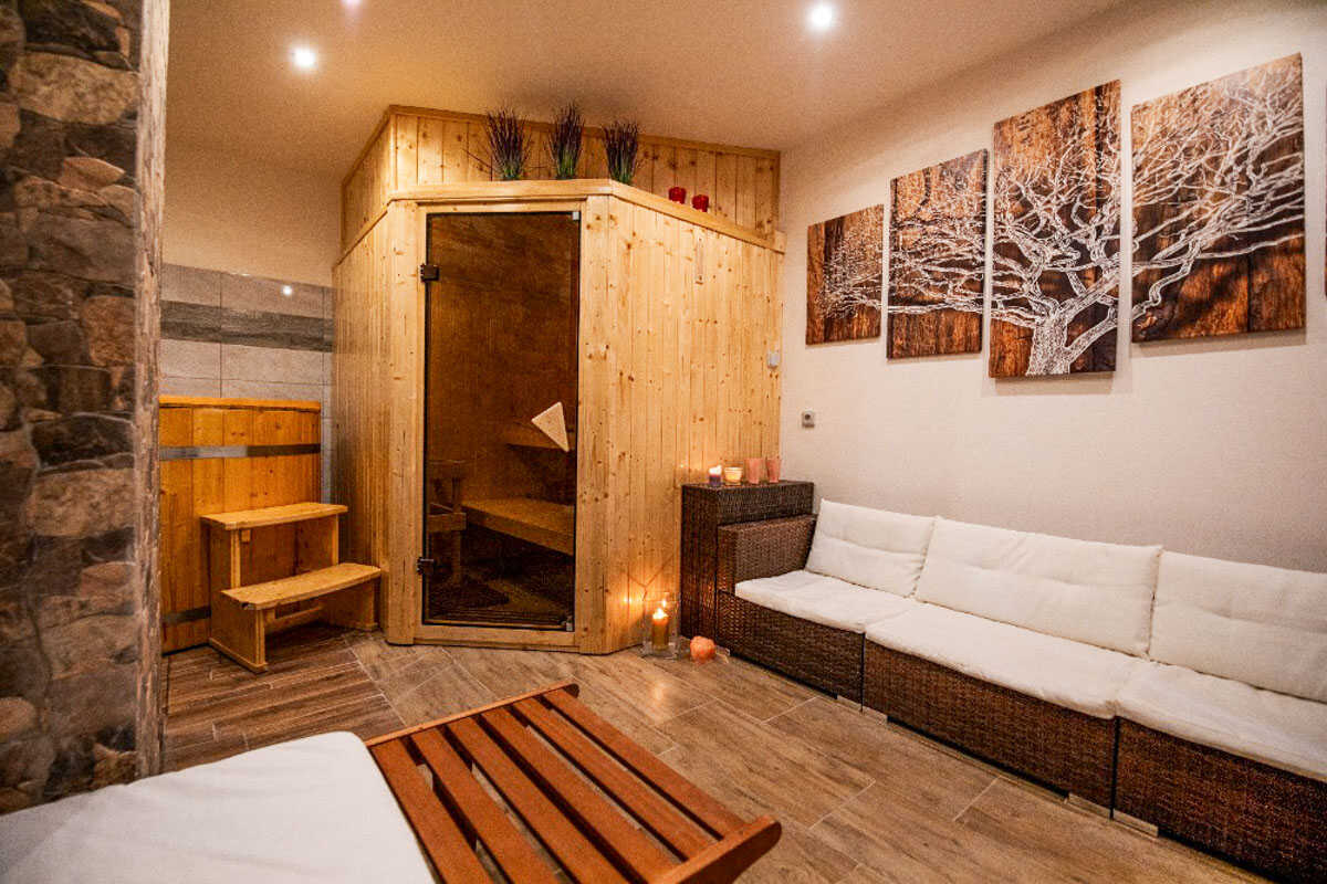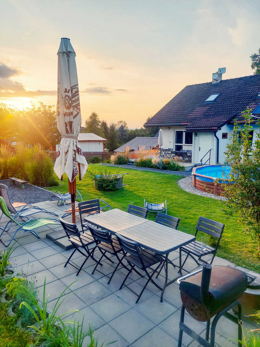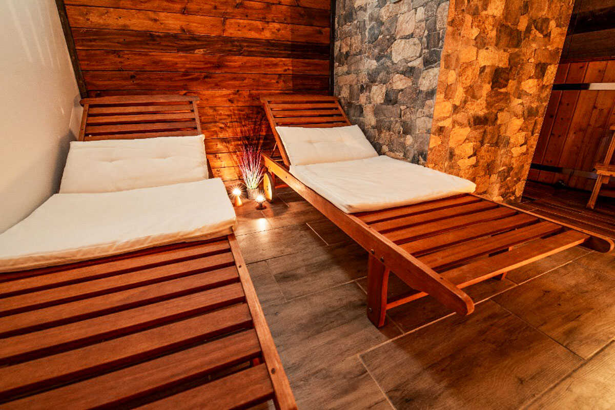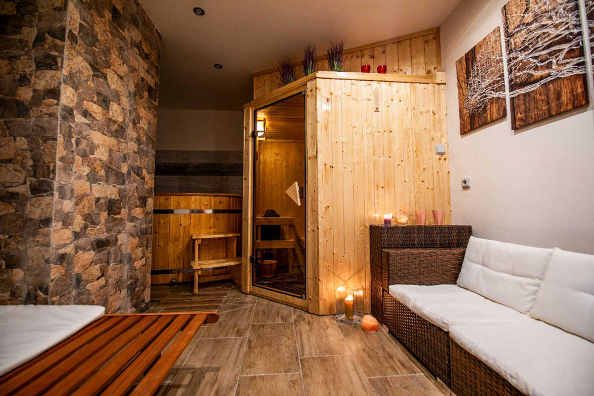 Hosté mohou odpočívat na zahradě s posezením, využít venkovní bazén (5,5 × 1,2 m), nebo si užít klidný večer u krbu v baru v suterénu. Pro dokonalý relax nechybí finská sauna, ideální po dni stráveném na sjezdovce či výletě. Děti potěší pískoviště, trampolína, houpačky i rozlehlý travnatý pozemek.