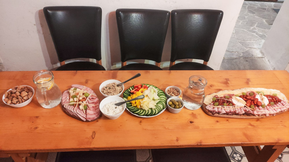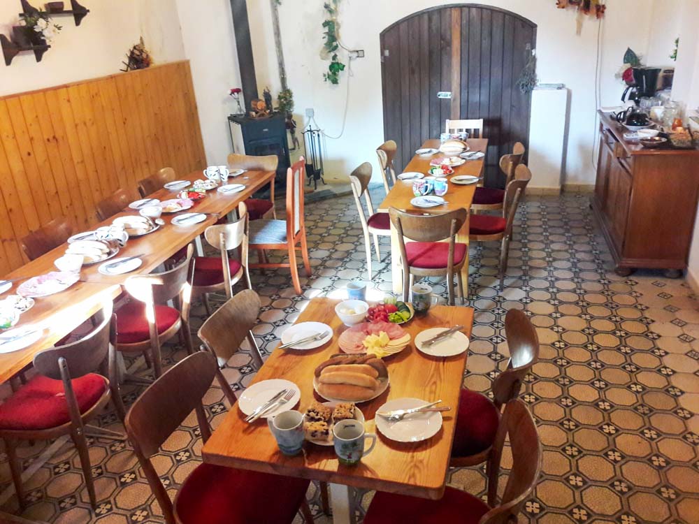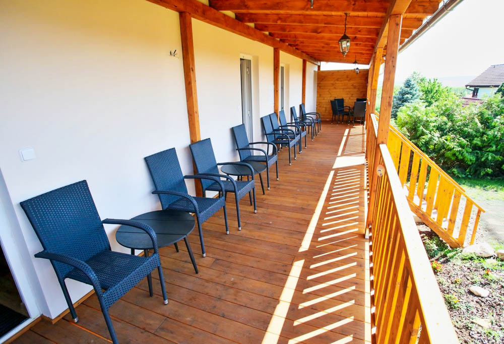 Centrem vnitřního zázemí je velká společenská místnost s kapacitou až 30 osob, vhodná pro večerní posezení, oslavy i společné plánování programu. Navazuje na ni plně vybavená kuchyně s vařiči, mikrovlnnými troubami, velkými lednicemi a kompletním nádobím, kterou mohou hosté volně využívat. Venkovní část penzionu tvoří rozlehlá zahrada s krytým posezením, ohništěm a grilem, ideální pro letní večery a neformální setkání.