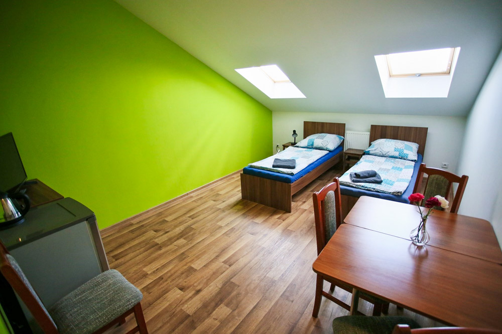 Penzion nabízí standardní dvoulůžkové, třílůžkové a čtyřlůžkové pokoje, které jsou vybaveny vlastní koupelnou, televizí, lednicí a rychlovarnou konvicí. Pro náročnější hosty nebo rodiny jsou k dispozici prostorné apartmány složené ze dvou oddělených pokojů se čtyřmi lůžky, které navíc disponují klimatizací za poplatek. Všechny ubytovací jednotky poskytují dostatek komfortu pro kratší i vícedenní pobyty a umožňují hostům plnou soběstačnost.