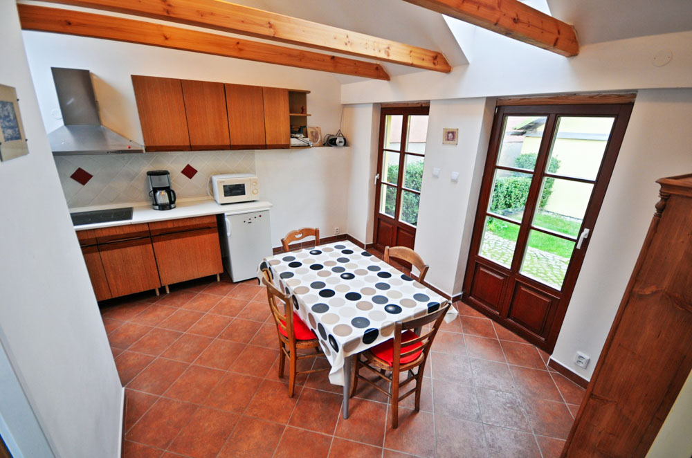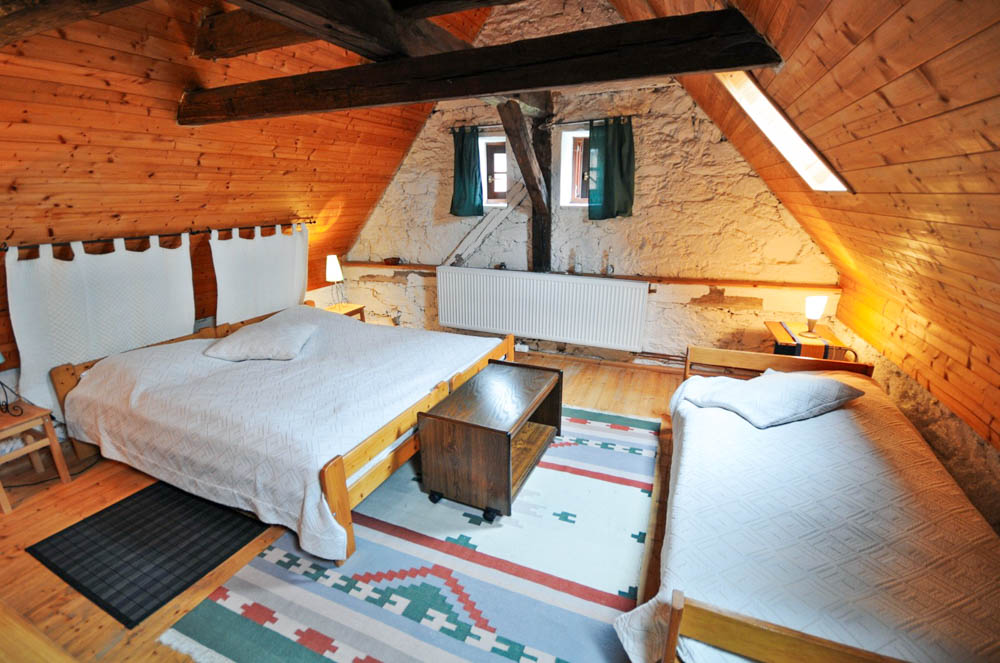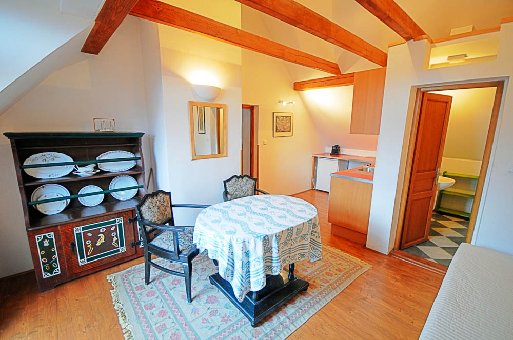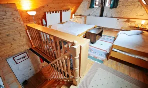 Nejvíce soukromí poskytuje Apartmá duplex, samostatně stojící dvoupatrový apartmán v bývalé sýpce. Nabízí tři pevná lůžka a až dvě přistýlky, takže je vhodný pro rodinu, menší skupinu přátel nebo páry hledající romantické zázemí. Hosté zde mají k dispozici vlastní kuchyňku, jídelní kout, posezení a samozřejmě vlastní sociální zařízení. Stylové dřevěné trámy, kamenné zdi a přímý kontakt se dvorem vytvářejí jedinečnou atmosféru, která se v běžných penzionech jen tak nevidí.