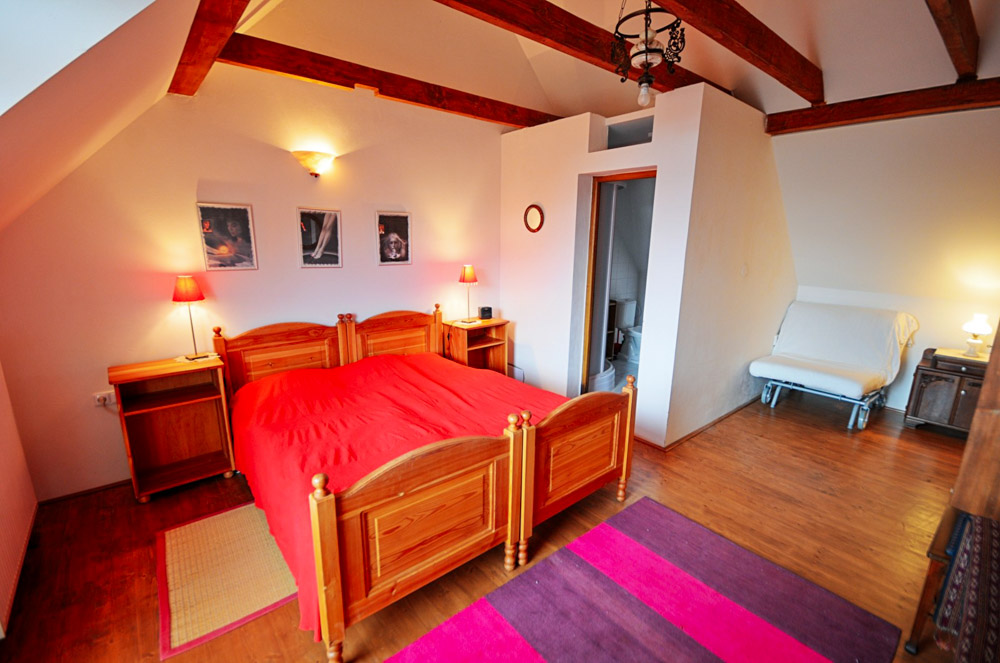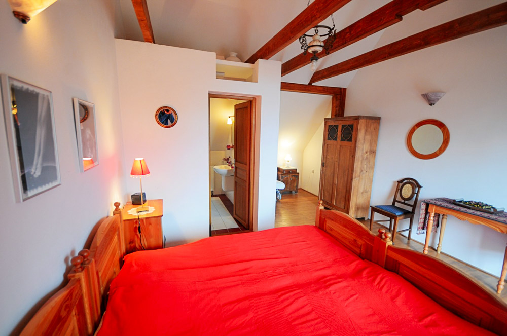 Červený pokoj nabízí kapacitu 2+1 a je ideální pro pár s jedním dítětem nebo tři dospělé. Dvě jednolůžkové postele doplňuje možnost přistýlky, takže je zde dostatek místa i pro menší rodinu. Teplé červené tóny pokoje vytvářejí příjemně hřejivou atmosféru a vlastní koupelna se sprchou zajišťuje dostatek soukromí.