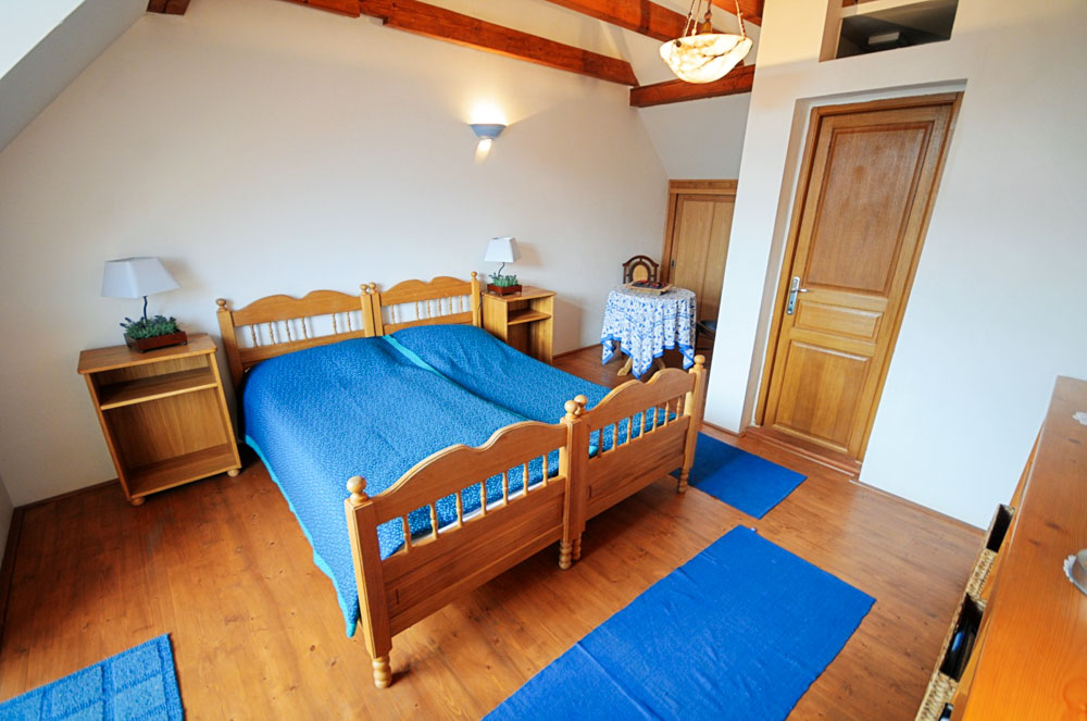 Modrý pokoj je útulný dvoulůžkový pokoj se dvěma samostatnými lůžky, které lze využít jako oddělená nebo blízko sebe jako „twin“ pro páry. Díky modrému ladění, dostatku denního světla a jednoduchému, ale vkusnému zařízení patří k nejoblíbenějším pokojům hostů, kteří hledají klidné zázemí na kratší i delší pobyt.