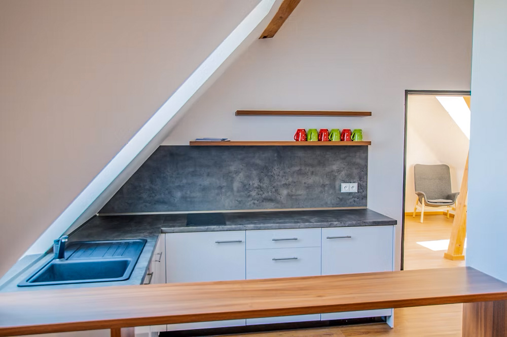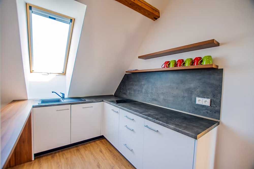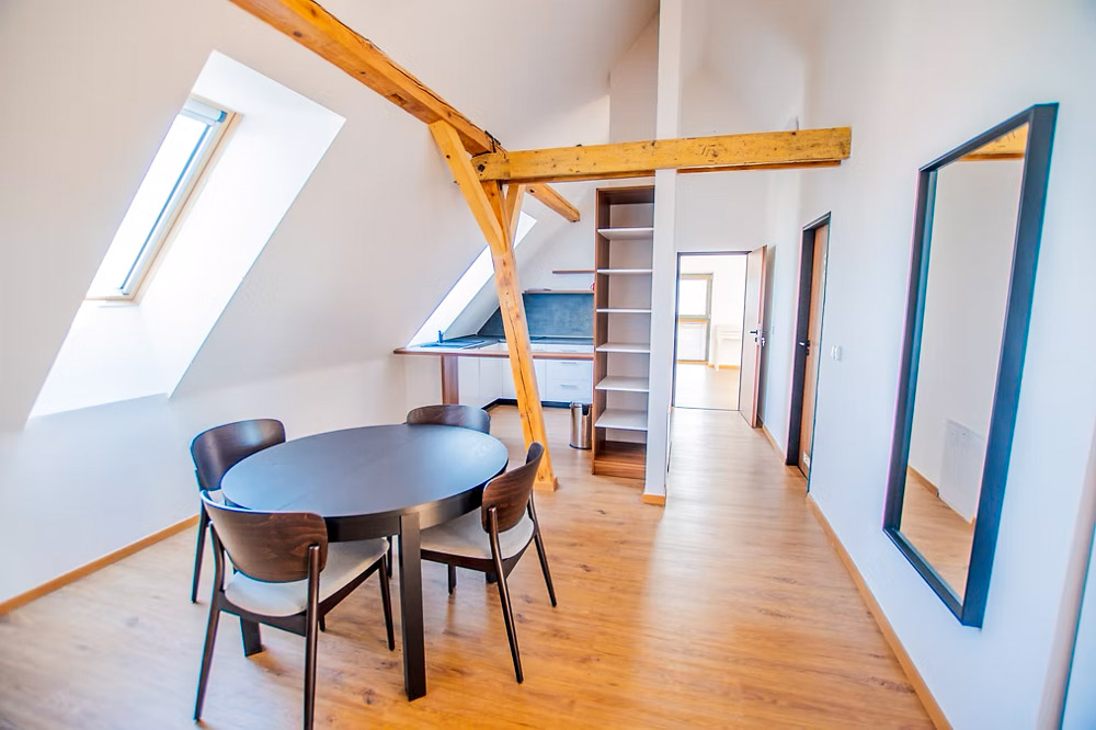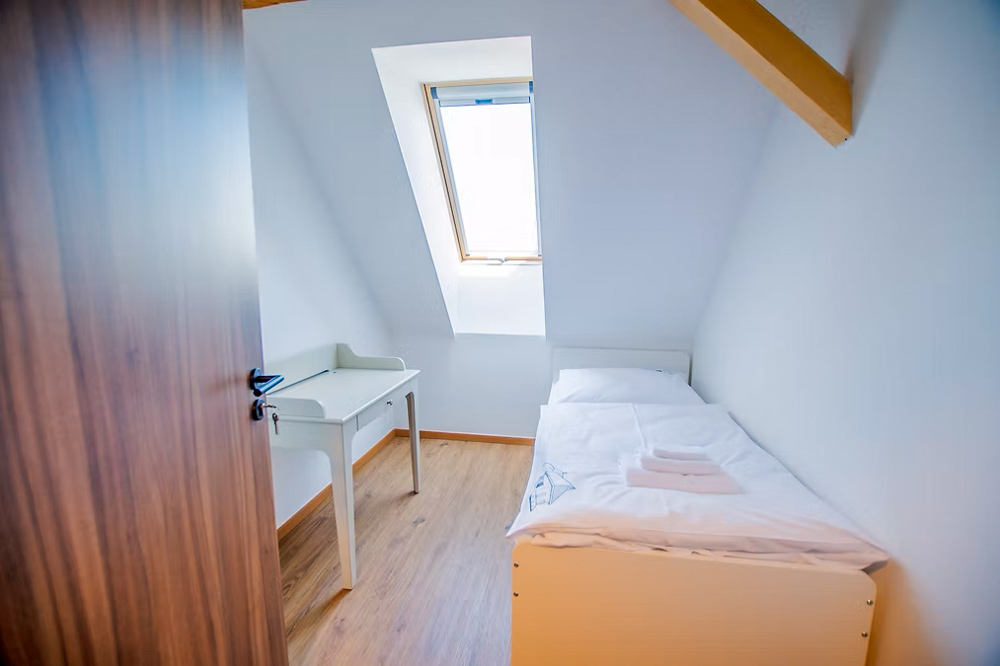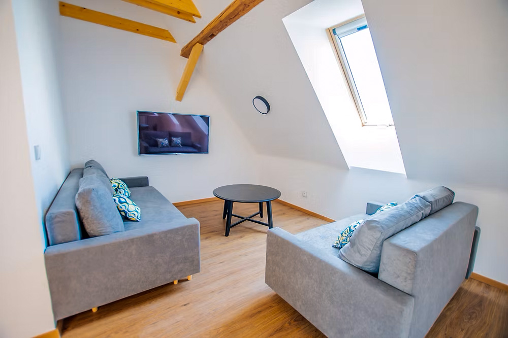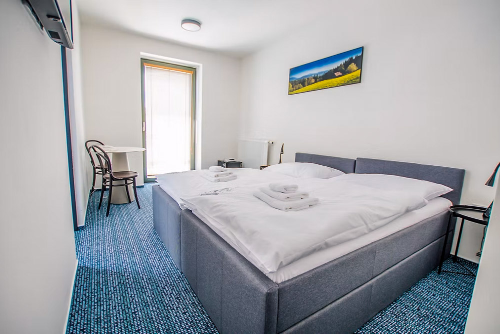Hosté mají na výběr dva jednolůžkové pokoje, ideální pro klidný pobyt jednotlivce, čtyři dvoulůžkové pokoje poskytující pohodlné zázemí pro páry a jeden čtyřlůžkový pokoj se dvěma samostatnými ložnicemi, který je vhodný pro rodiny nebo menší skupiny přátel. Nejluxusnější částí ubytování je prostorný apartmán, jenž disponuje dvěma ložnicemi – v jedné se nachází manželská postel, ve druhé samostatné lůžko – a dále velkorysým obývacím pokojem. Ten je vybaven televizorem, sedacími soupravami, křeslem a jídelním koutem a navazuje na plně vybavenou kuchyni, která umožňuje pohodlné vlastní stravování i při delších pobytech.