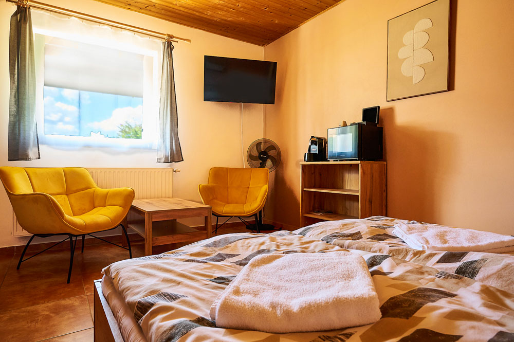 Ubytování je zajištěno v několika typech jednotek s celkovou kapacitou až 151 lůžek včetně přistýlek. Hosté si mohou vybrat z bungalovů, apartmánů nebo chat, které uspokojí jak páry, tak i početné skupiny. Každá jednotka má vlastní koupelnu se sprchou, toaletou a umyvadlem, nechybí Wi-Fi připojení, televize, ručníky a povlečení. Některé pokoje jsou navíc vybavené terasou s posezením, minibarem nebo kávovarem, takže si hosté mohou užívat maximální pohodlí v soukromí.