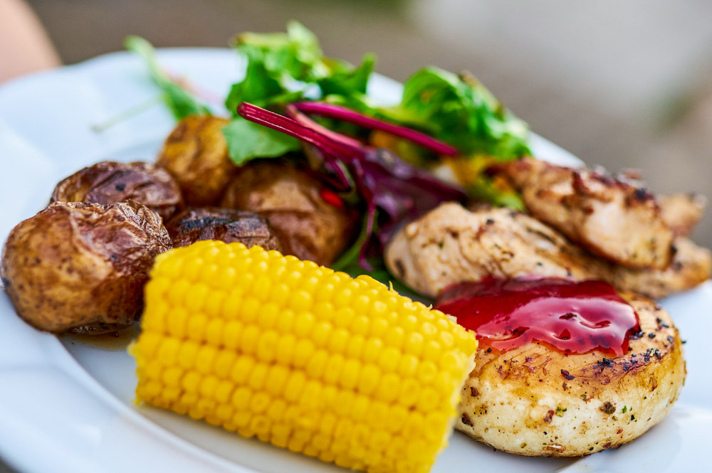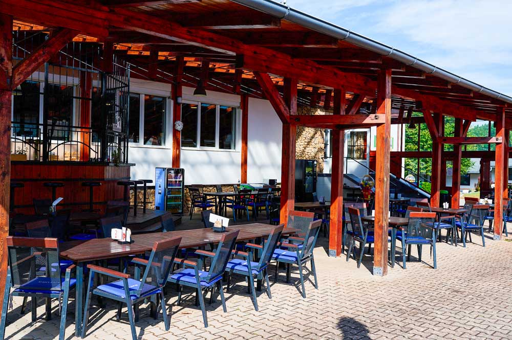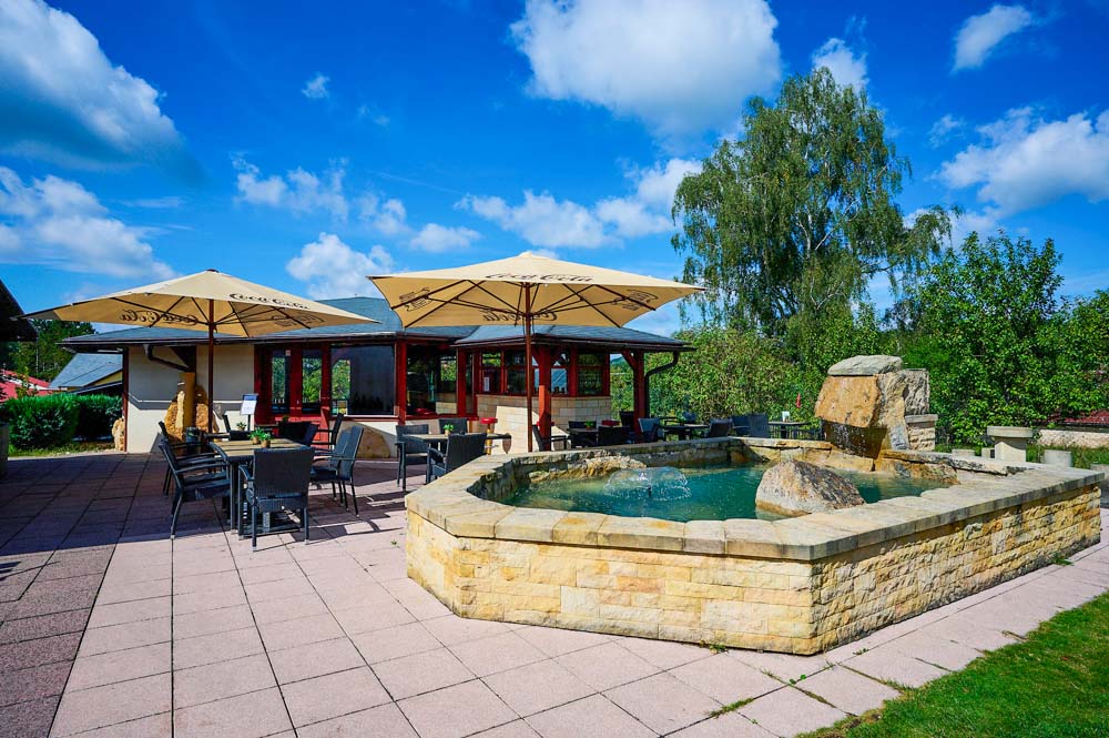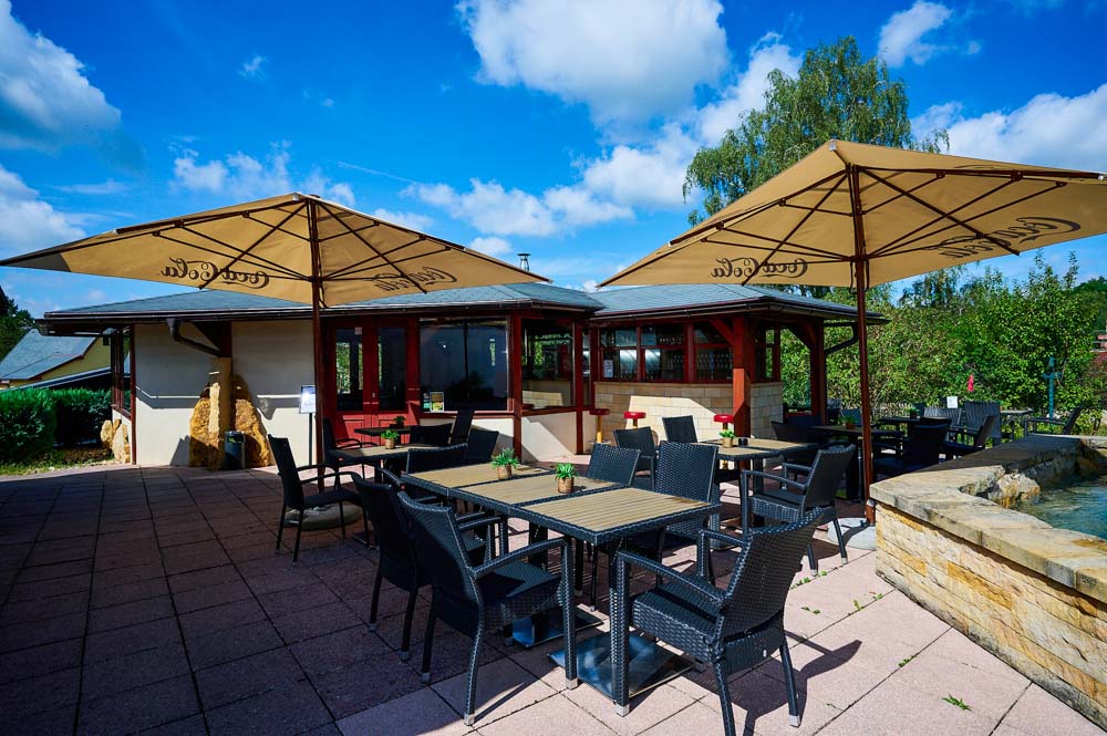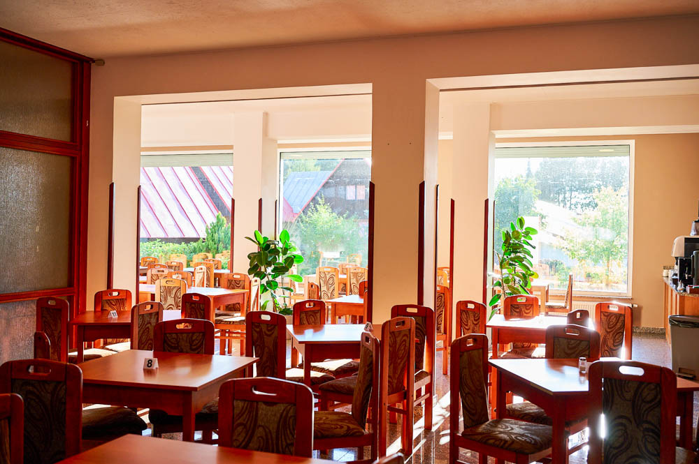 Součástí resortu je moderní restaurace, která nabízí polopenzi i plnou penzi s bohatou nabídkou české i mezinárodní kuchyně. Pokrmy jsou připravovány z čerstvých surovin a doplněny o sezónní speciality. V letní sezóně je otevřena také terasa s venkovním posezením, kde si hosté mohou vychutnat jídlo či drink pod širým nebem.