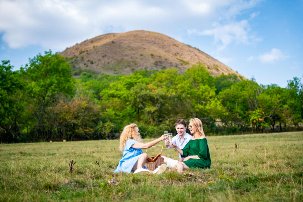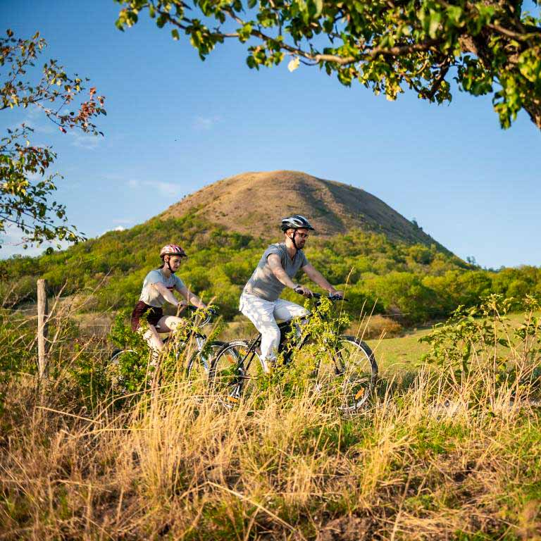 Okolí Resortu Oblík je v podstatě jedna velká soukromá rezervace, kde místo hluku aut uslyšíte jen vítr v trávě a občasné zařehtání koní či poníků pasoucích se na okolních dvou stech hektarech revitalizovaných pastvin. Přímo od bran areálu vás zelená turistická značka vytáhne na vrchol magického čedičového vrchu Oblík, odkud si po zhruba čtyřicetiminutovém výšlapu vychutnáte jeden z nejhezčích kruhových výhledů v Česku, zahrnující zvlněné moře okolních kopců jako jsou Raná nebo Milá.