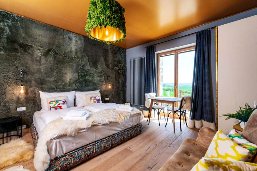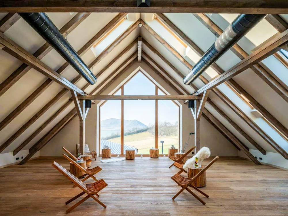 Ubytování v Resortu Oblík představuje vrchol současného pojetí „slow travel“ a péče o tělo i mysl. Celý koncept vychází z citlivě zrekonstruovaného historického statku, kde se podařilo propojit syrovou krásu Českého středohoří s interiéry nejvyšší kvality. Každý pokoj a suite je navržen jako originál s důrazem na přírodní materiály, klidnou barevnost a výjimečné výhledy do otevřené krajiny s dominantami vrchů Oblík a Raná.