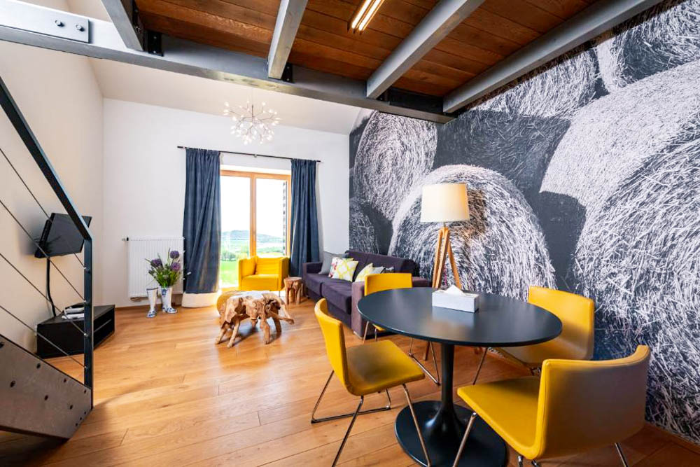 Resort Oblík najdete na úpatí stejnojmenného čedičového vrchu u obce Mnichov, kousek od Loun. Je to místo, kde končí asfalt a začíná naprosté ticho – resort vznikl citlivou rekonstrukcí historického statku, který stojí osamoceně uprostřed zvlněné krajiny. Díky skvělé dostupnosti (z Prahy jste tu za necelou hodinu) jde o ideální "vypínač" z městského shonu, kde vás od civilizace dělí jen pár kilometrů, ale pocitově jste v jiném světě.