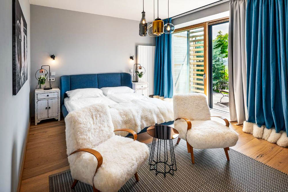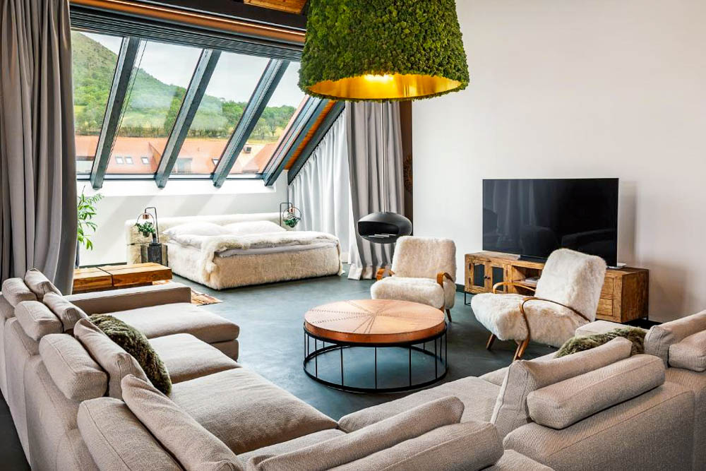 Vzdušnější ubytování nabízí Duplex Suite, které jsou rozloženy do dvou podlaží a pohodlně ubytují až čtyři osoby. Součástí je plně vybavená kuchyň, díky které si hosté mohou dopřát maximální nezávislost. Terrace Suite zaujmou především prostornou soukromou terasou, která je ideálním místem pro ranní kávu i večerní pozorování hvězd nad Oblíkem. Interiér s manželskou postelí a klimatizací je navržen s důrazem na klid a relaxaci.