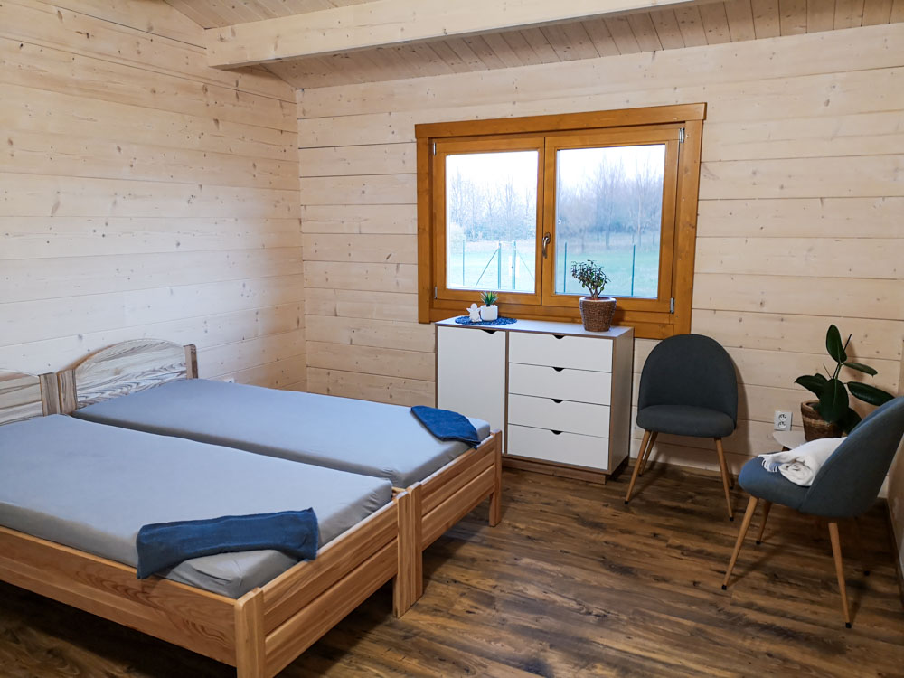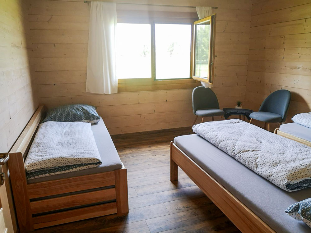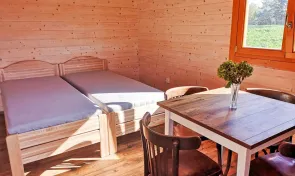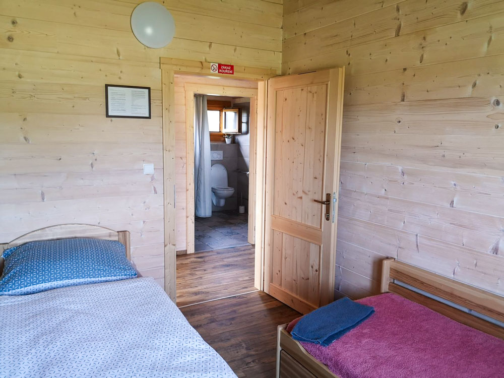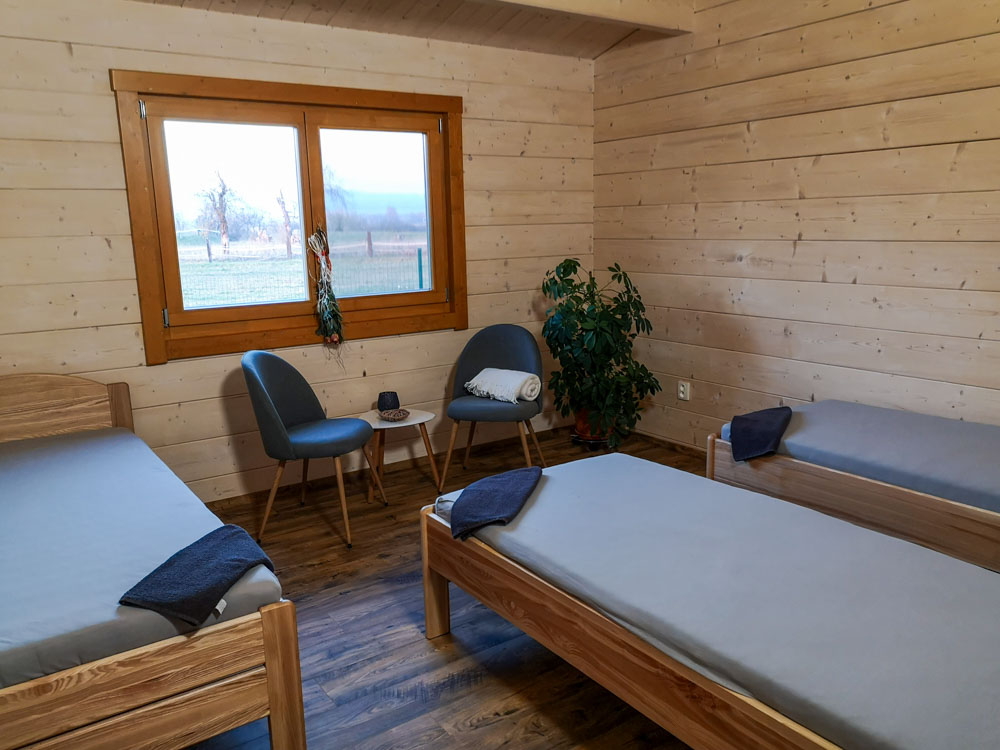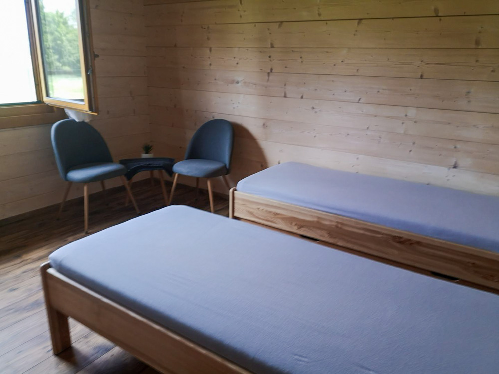 Ve dvoulůžkovém a třílůžkovém pokoji hosté naleznou pohodlné postele, sdílenou kuchyňku s varnou deskou, troubou, lednicí a kávovarem, a dvě společné koupelny. Součástí objektu je i společenská místnost, která je k dispozici k pronájmu od podzimu do jara, ideální pro oslavy, školení nebo menší firemní akce s kapacitou až 25 osob.