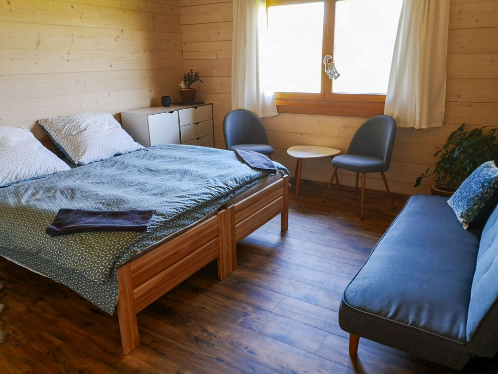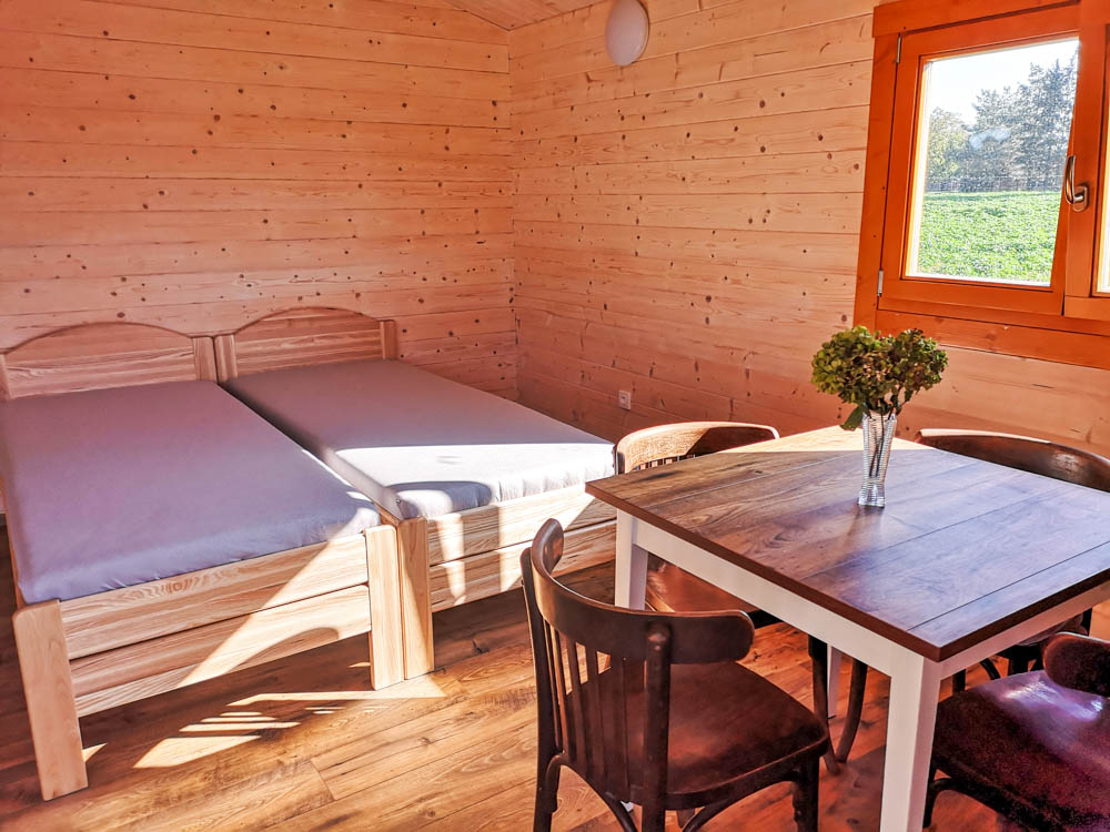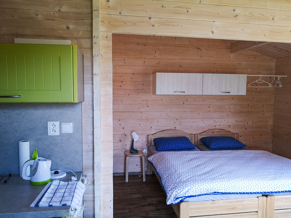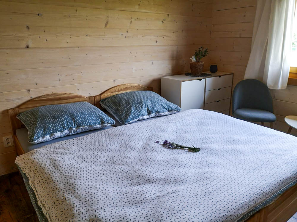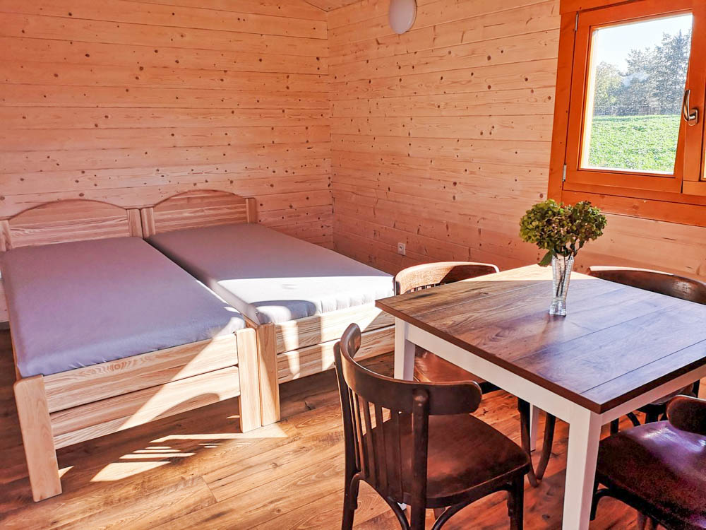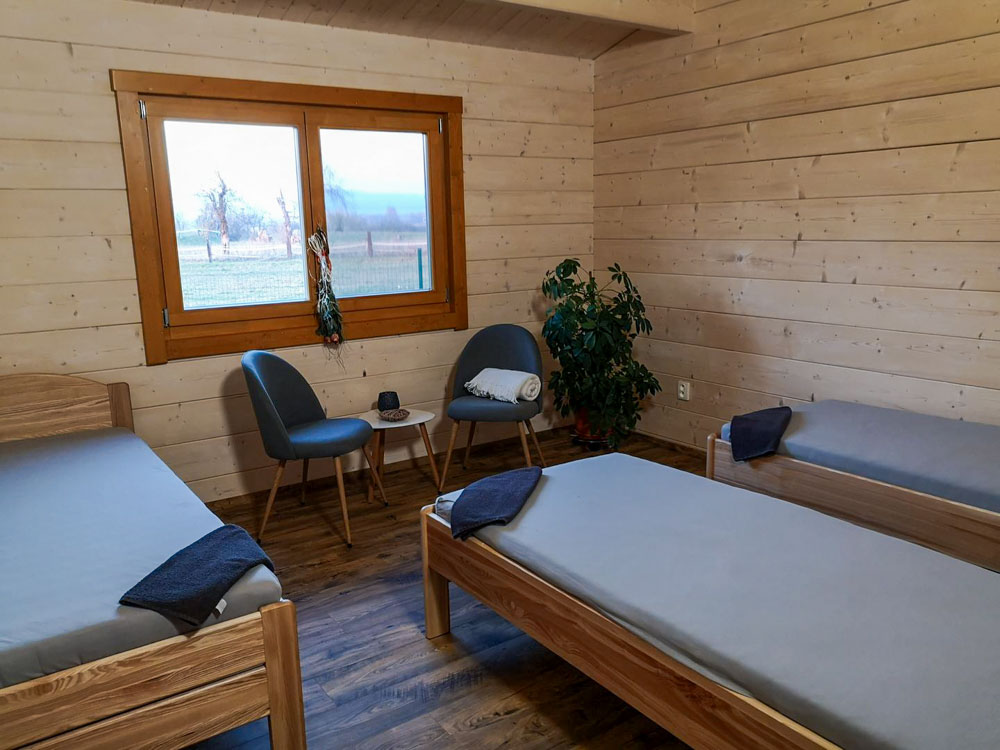 Ve dvoulůžkovém a třílůžkovém pokoji hosté naleznou pohodlné postele, sdílenou kuchyňku s varnou deskou, troubou, lednicí a kávovarem, a dvě společné koupelny. Součástí objektu je i společenská místnost, která je k dispozici k pronájmu od podzimu do jara, ideální pro oslavy, školení nebo menší firemní akce s kapacitou až 25 osob.