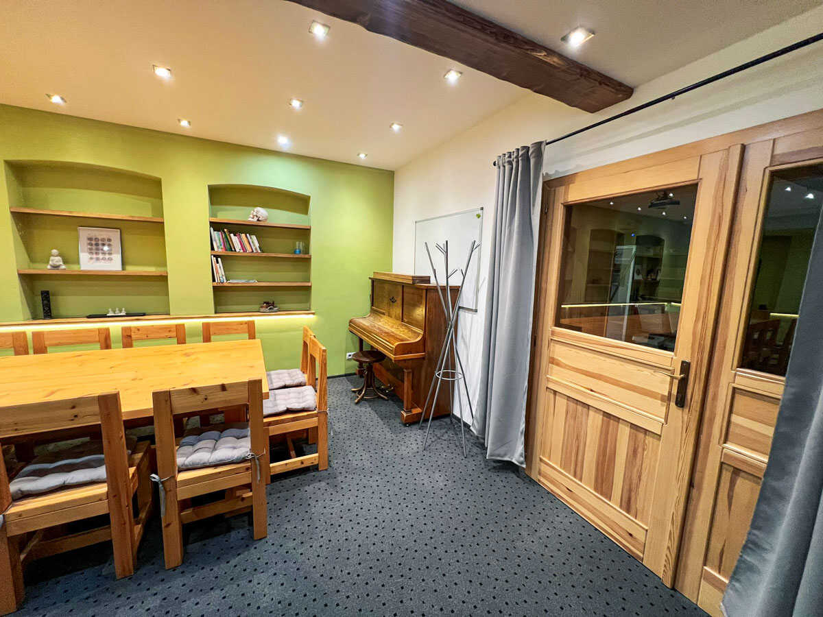 Součástí ubytovacího komplexu je také několik společenských místností a plně vybavené společné kuchyňky, které hosté mohou využívat dle potřeby. Resort UKO klade důraz na rodinné a přátelské prostředí — celý areál je nekuřácký, bezpečný a vhodný pro děti. K dispozici je také úschovna kol a lyží, což ocení návštěvníci přijíždějící na letní cyklodovolenou či zimní lyžovačku. Díky rozložení areálu do více objektů nabízí resort dostatek soukromí a prostoru i v době zvýšené obsazenosti.