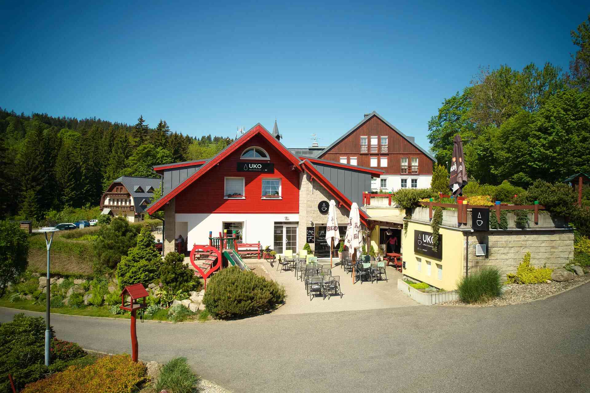 Resort UKO se nachází v horské obci Bedřichov 300 v Jizerských horách, obklopen lesy, horami, horskou krajinou a s výhledy do přírody. Celý areál je zasazený do klidného venkovského a horského prostředí, poskytujícího ideální zázemí pro odpočinek, turistiku i zimní sporty.