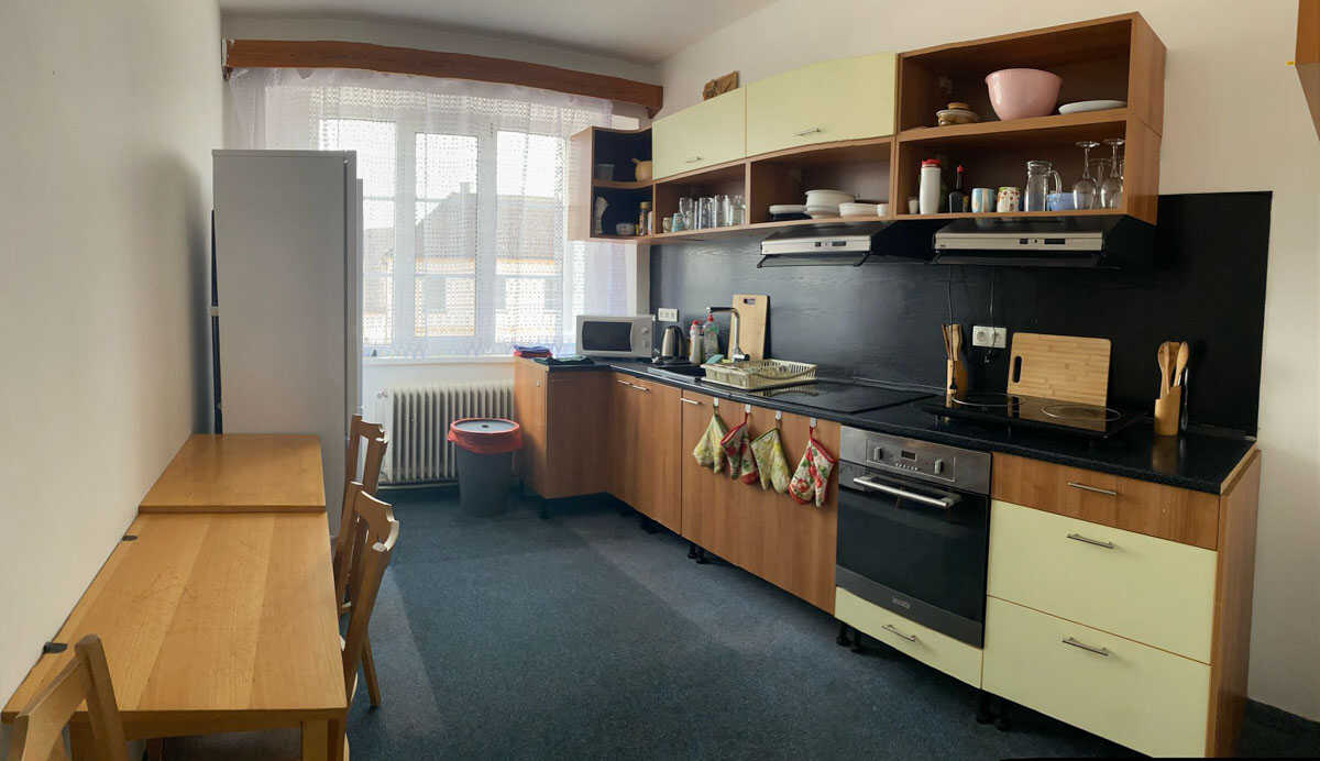 Hosté mají k dispozici plně vybavenou společnou kuchyni, která obsahuje elektrickou varnou desku, troubu, dvě lednice, mikrovlnnou troubu, rychlovarnou konvici a veškeré kuchyňské nádobí. Pro cyklisty je připravená uzamykatelná kolárna přímo v objektu.