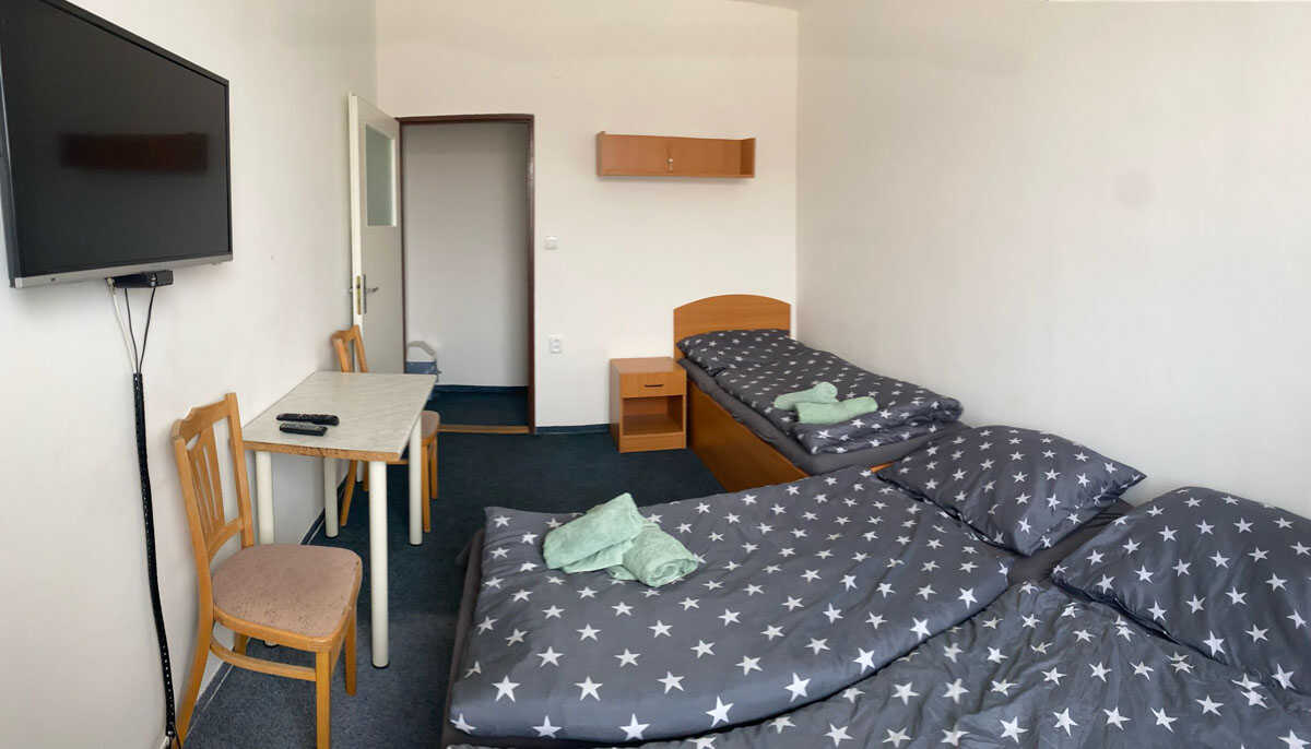 Každý pokoj je vybaven televizorem, malou ledničkou a samozřejmostí je Wi-Fi připojení zdarma.