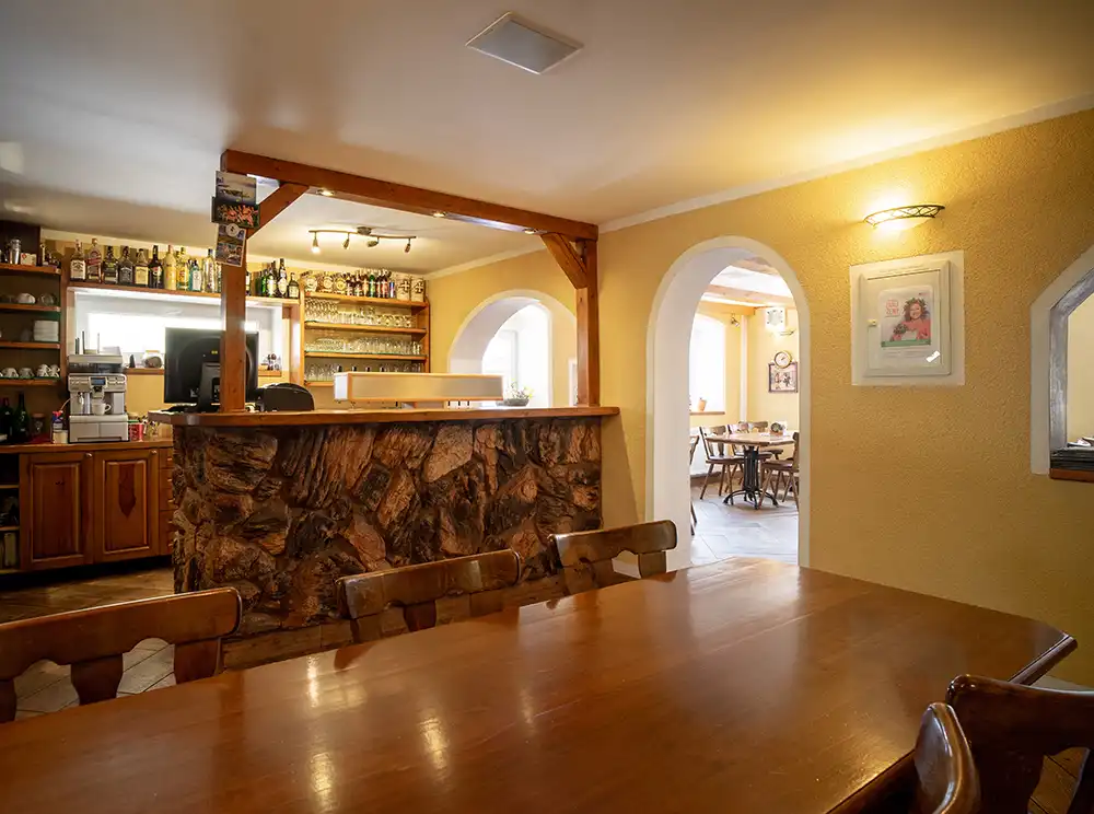 Součástí penzionu je restaurace a salonek s kapacitou cca 50 osob a v letních měsících letní terasa až pro 70 hostů, kde si můžete vychutnat výbornou kuchyni. Veškeré prostory jsou vybaveny bezplatným Wi-Fi připojení k internetu.