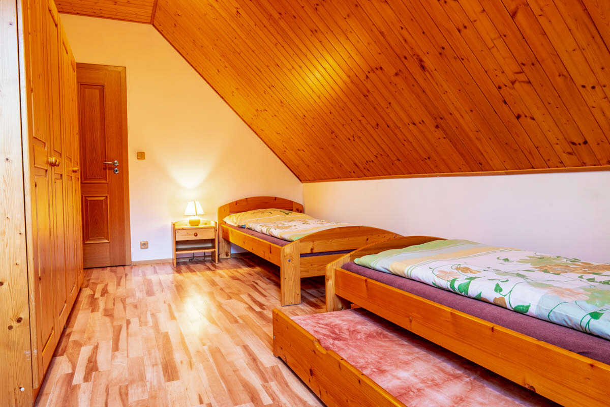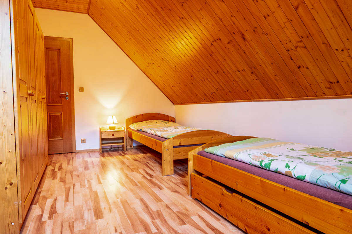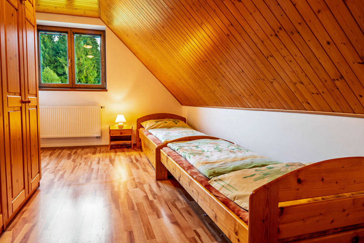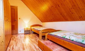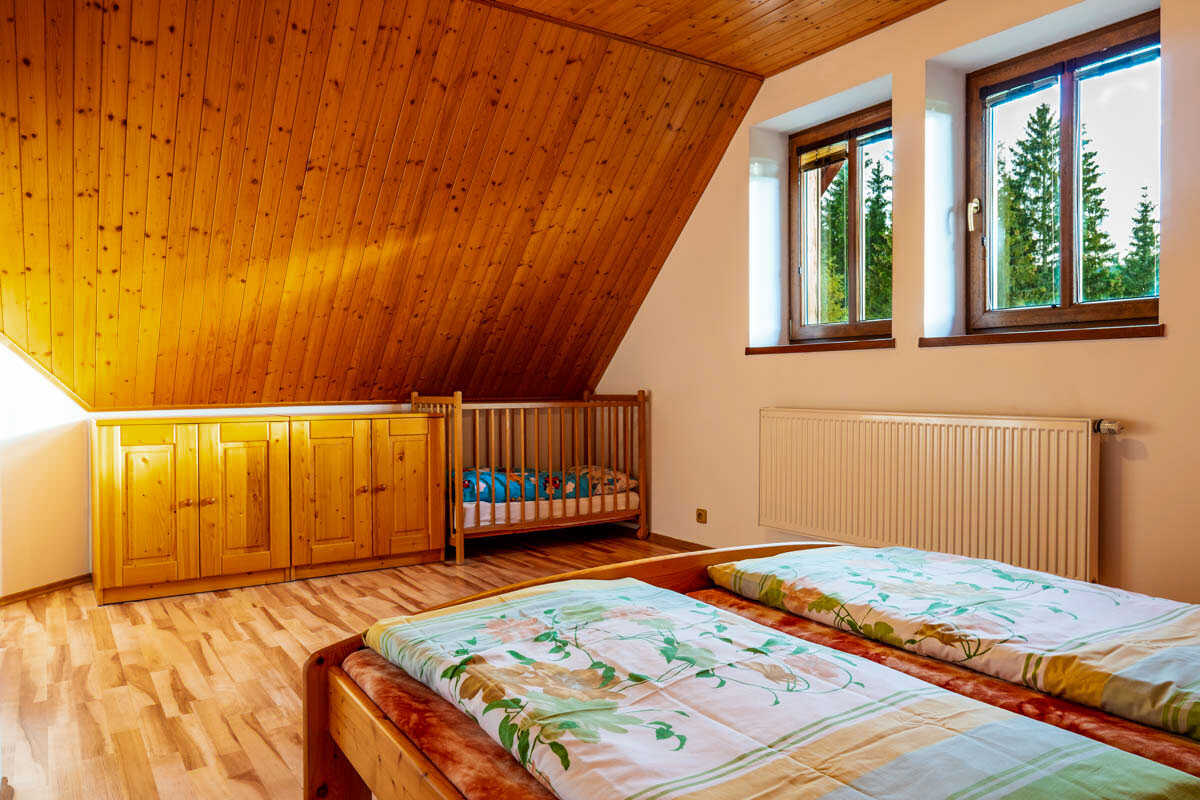 V chalupě jsou tři prostorné ložnice, které jsou vkusně zařízené a vybavené kvalitními postelemi s možností přistýlky. Každá místnost působí domácky a nabízí dostatek prostoru pro rodiny i menší skupiny přátel. K dispozici jsou také dvě moderní koupelny – jedna se sprchovým koutem a druhá s vanou, takže si hosté mohou vybrat podle svých preferencí. V objektu se nachází i samostatné WC, což zaručuje dostatek soukromí a komfortu i při plné obsazenosti chalupy.