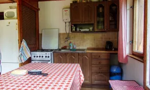 Uvnitř domku se nachází 3 oddělené ložnice, prostorný obývací pokoj s krbem, kde si můžete užít večery u praskajícího dřeva, a plně vybavená kuchyně s lednicí, nádobím a veškerým vybavením pro přípravu jídel. Nechybí ani koupelna se sprchovým koutem, samostatné WC a vše potřebné pro pohodlný pobyt, včetně ložního prádla a ručníků.