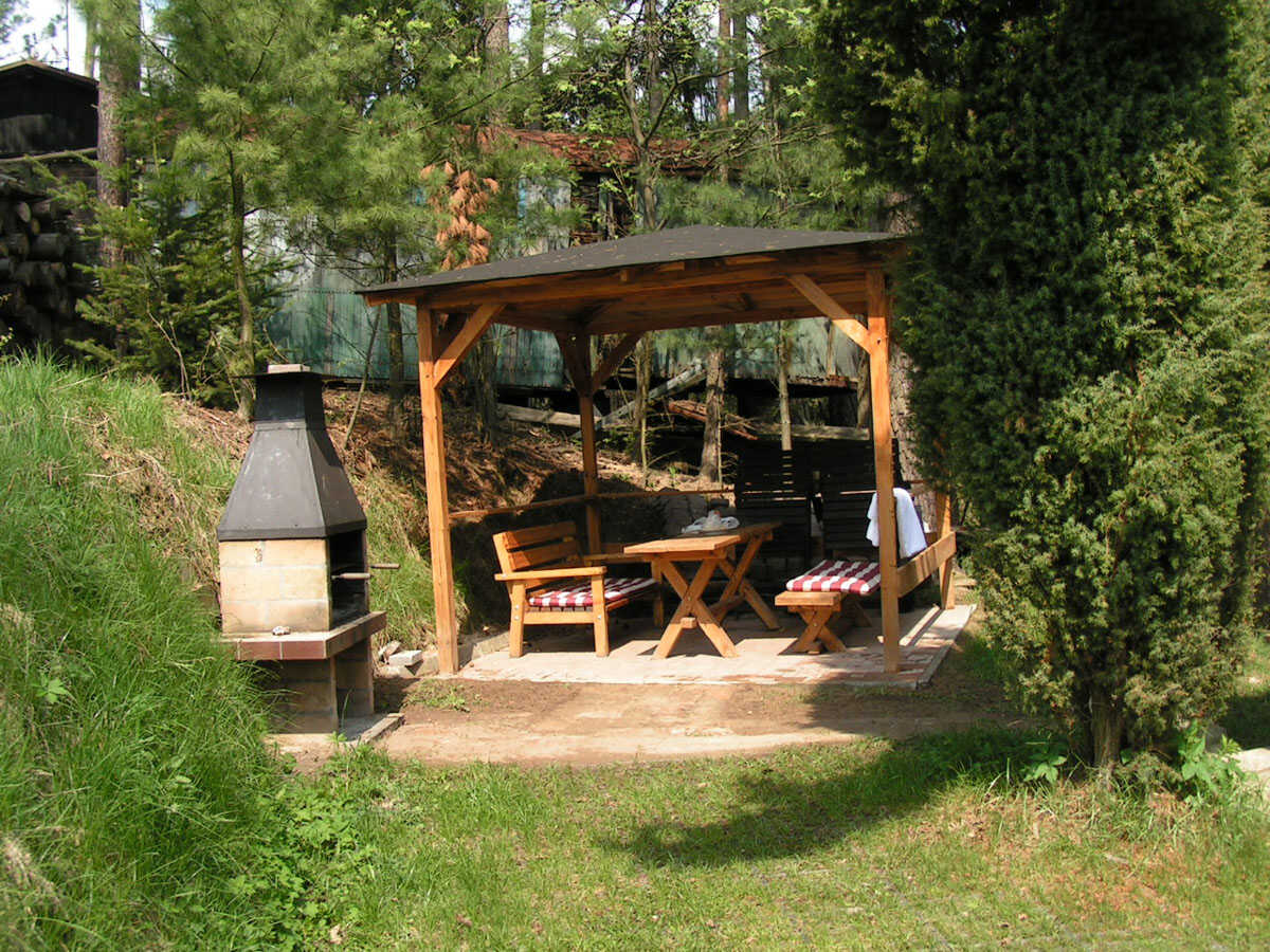 Součástí objektu je i rozlehlá zahrada. K dispozici je zahradní nábytek, gril a ohniště, ideální pro večerní posezení, vaření na ohni nebo rodinné grilování. Ocení ji i děti, které mají dostatek prostoru ke hraní.