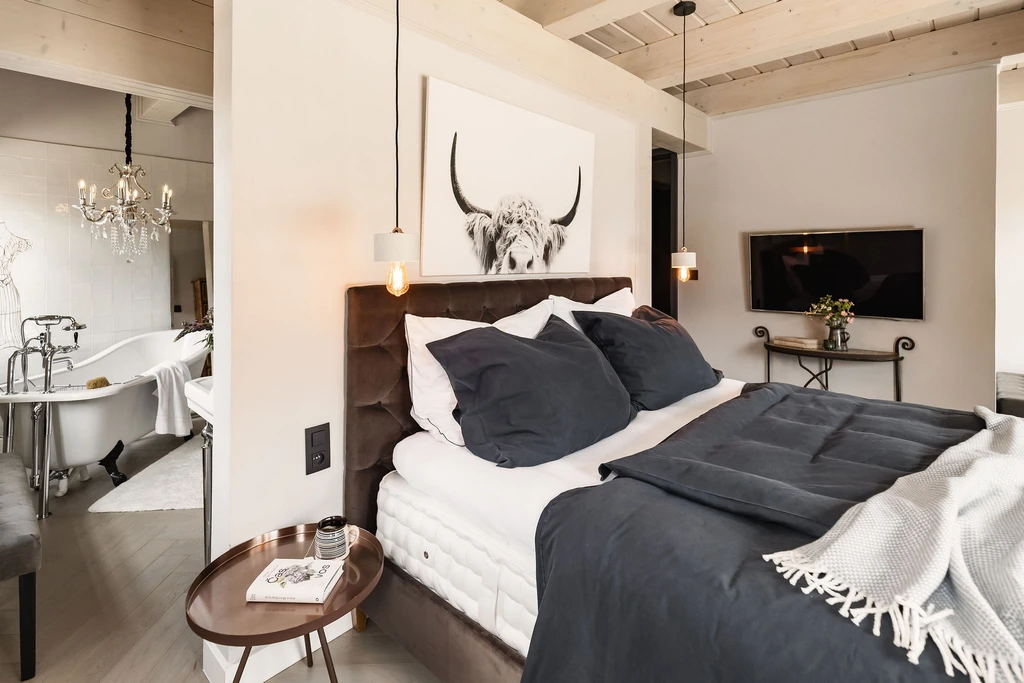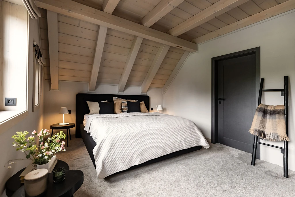 Chata se pronajímá pouze jako celý objekt. Disponuje čtyřmi samostatnými ložnicemi s manželskou postelí, každá s televizorem a dostatkem úložného prostoru. Součástí je i dětský pokoj se dvěma přistýlkami. V budově se nacházejí dvě koupelny s vanou a toaletou, ideální pro teplou koupel po lyžovačce nebo turistickém výletu. Součástí vybavení roubenky je také pračka, kterou mohou hosté během pobytu využívat.