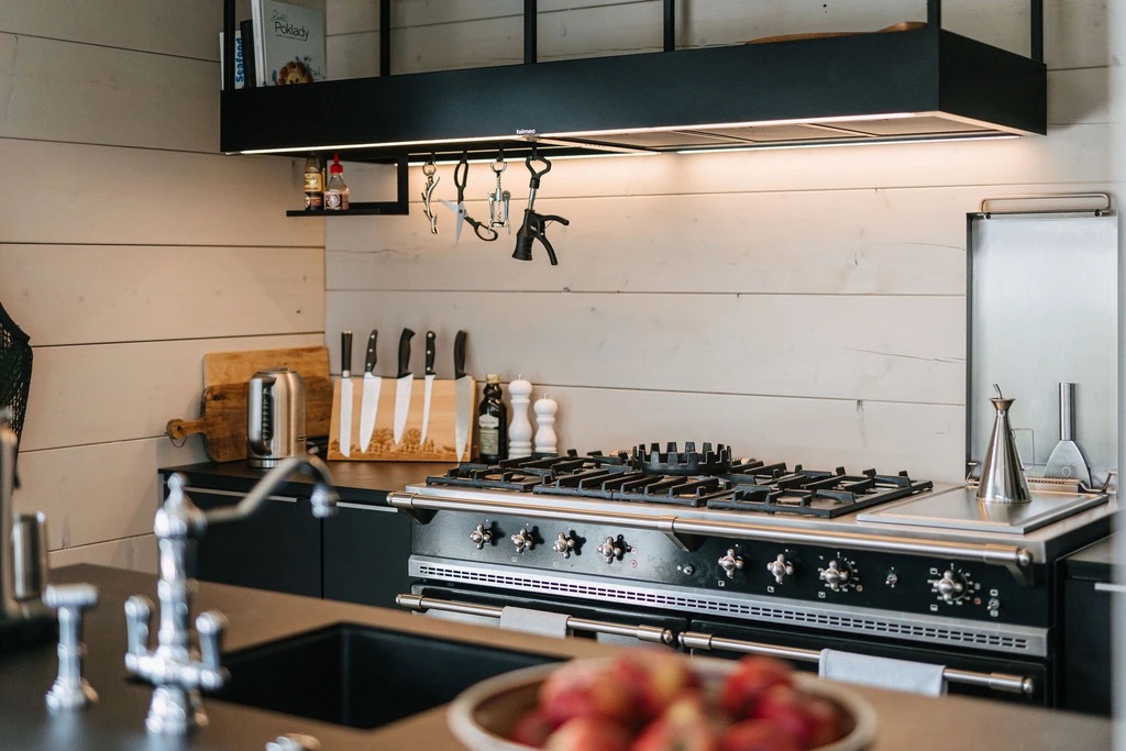 V přízemí se nachází otevřený obytný prostor, ve kterém je propojena kuchyň, jídelna a obývací pokoj. Kuchyň disponuje veškerými potřebnými spotřebiči (horkovzdušná trouba, plynový sporák, myčka nádobí, toustovač, kávovar a dostatek nádobí a příborů). V obývacím pokoji naleznete pohodlné posezení s výhledem do zahrady a televizorem.