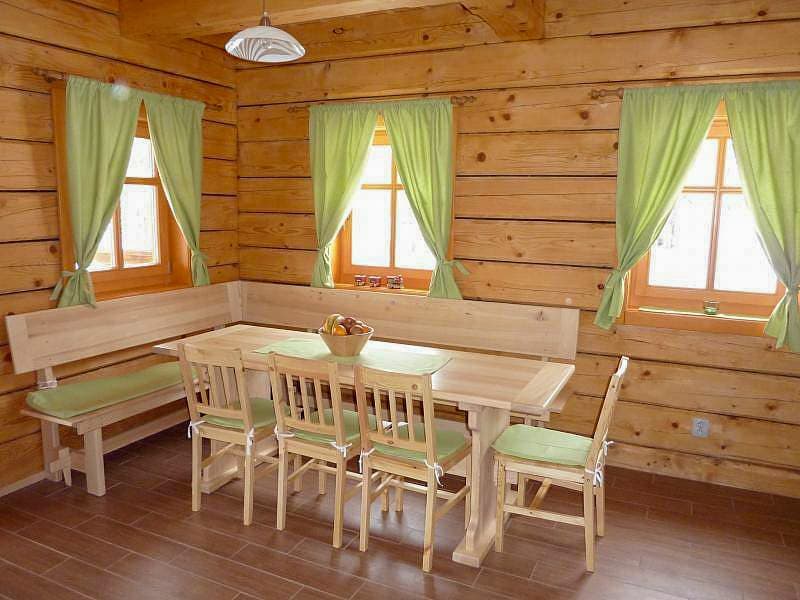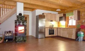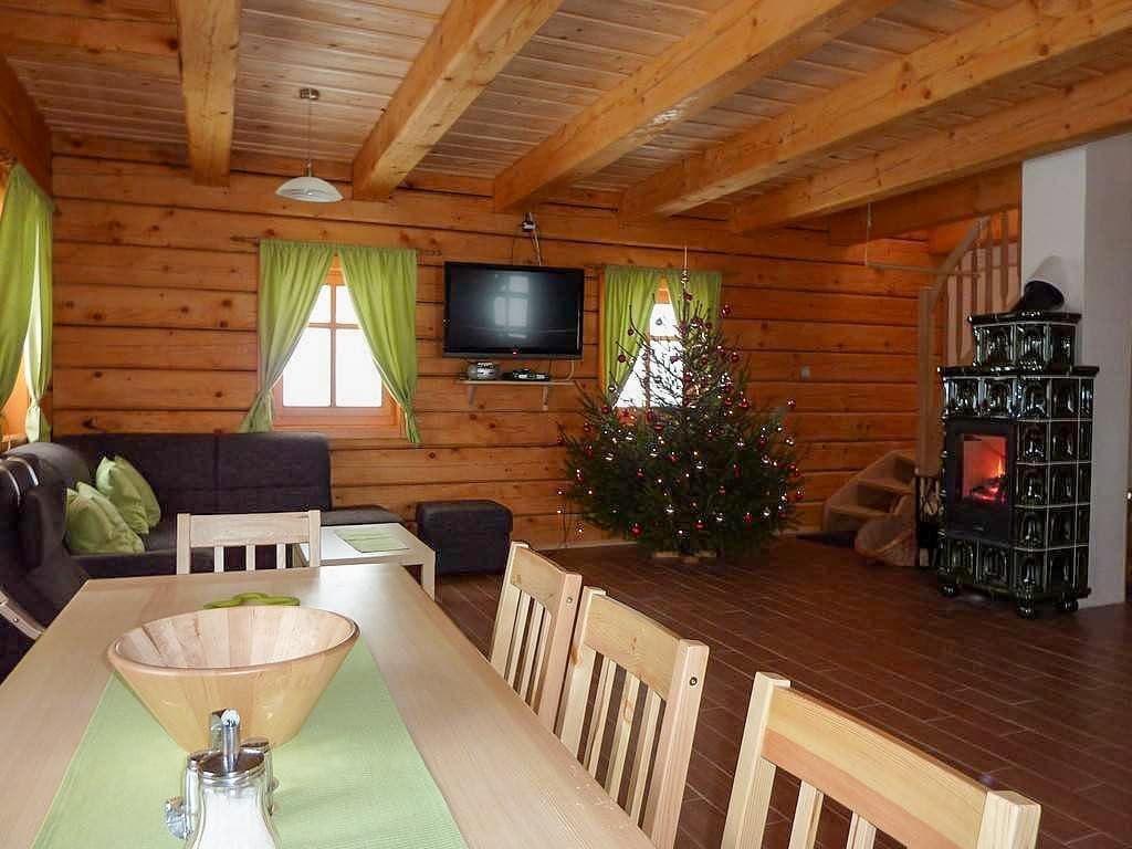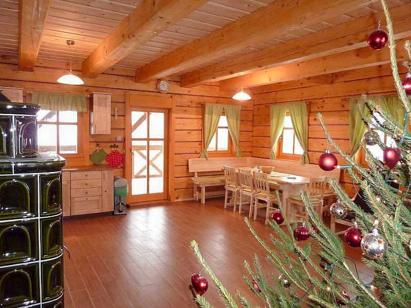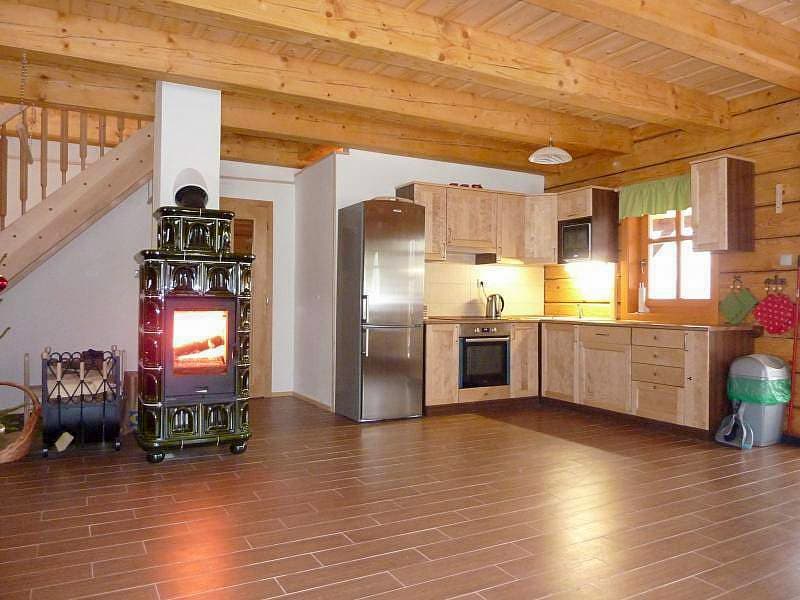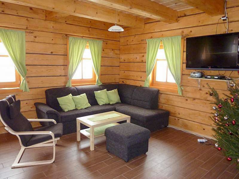Roubenka je k dispozici celoročně a nabízí komfortní ubytování až pro 12 osob. Dominantou přízemí je útulná společenská místnost s jídelním koutem, televizí a kachlovými kamny, která vytvářejí příjemnou horskou atmosféru. Odtud je přímý vstup na zastřešenou terasu s posezením a krásným výhledem na okolní hory. Plně vybavený kuchyňský kout zahrnuje veškeré potřebné spotřebiče (lednice, sklokeramická varná deska, elektrická trouba, myčka nádobí, mikrovlnná trouba, rychlovarná konvice), takže si bez problémů připravíte vlastní jídla.