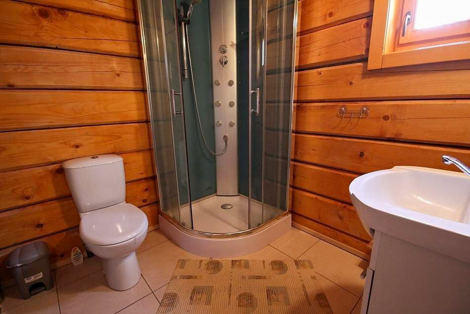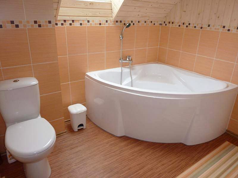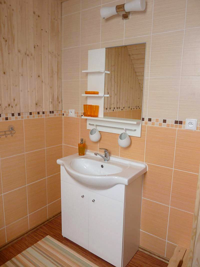 Hostům slouží dvě koupelny – v přízemí se sprchovým koutem a v podkroví s rohovou vanou. Samozřejmostí je vytápění pomocí kachlových kamen, doplněné přímotopy a topnými žebříky v koupelnách.