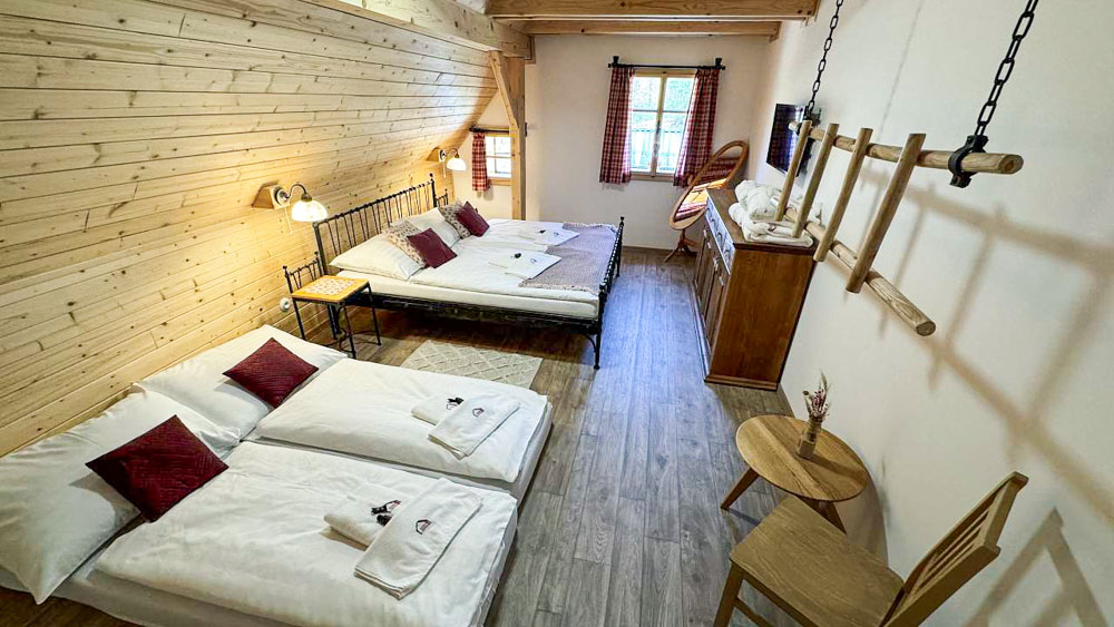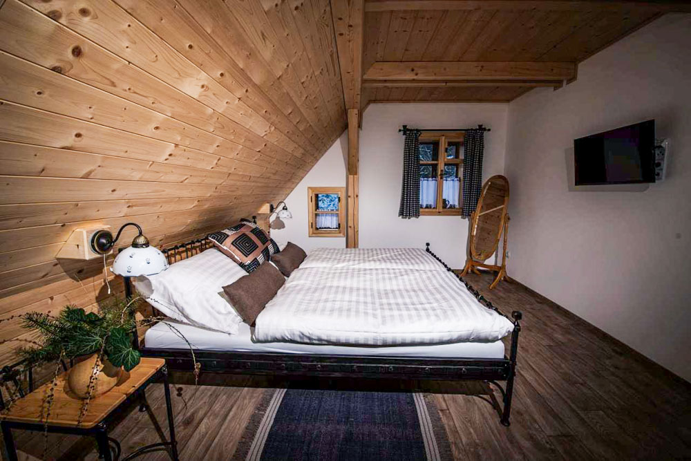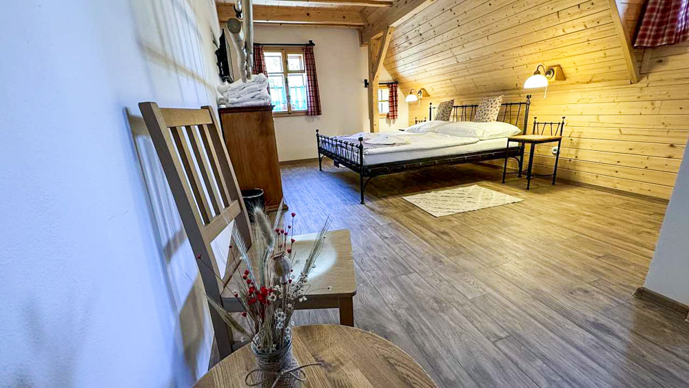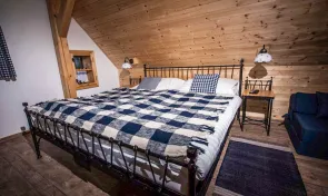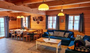 Roubenka u sjezdovky – Filipovice je luxusní horský objekt, který kombinuje tradiční architekturu s moderním komfortem a soukromým wellness. Roubenka je postavena z kvalitního dřeva, což vytváří útulnou atmosféru a zároveň skvěle ladí s okolní přírodou Jeseníků. Nabízí ubytování až pro 14 osob v pěti samostatných ložnicích – čtyři s manželskými postelemi a jedna s oddělenými lůžky. Díky své prostornosti je ideální pro pobyt více rodin nebo skupiny přátel, kteří hledají komfortní zázemí přímo pod sjezdovkou.
