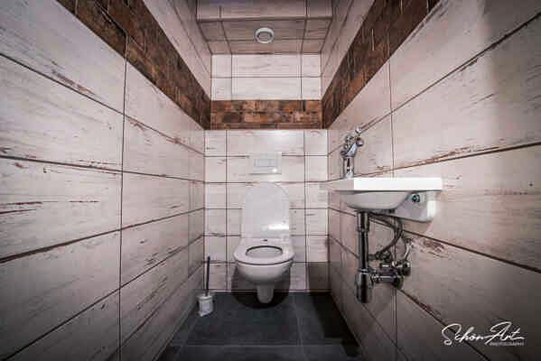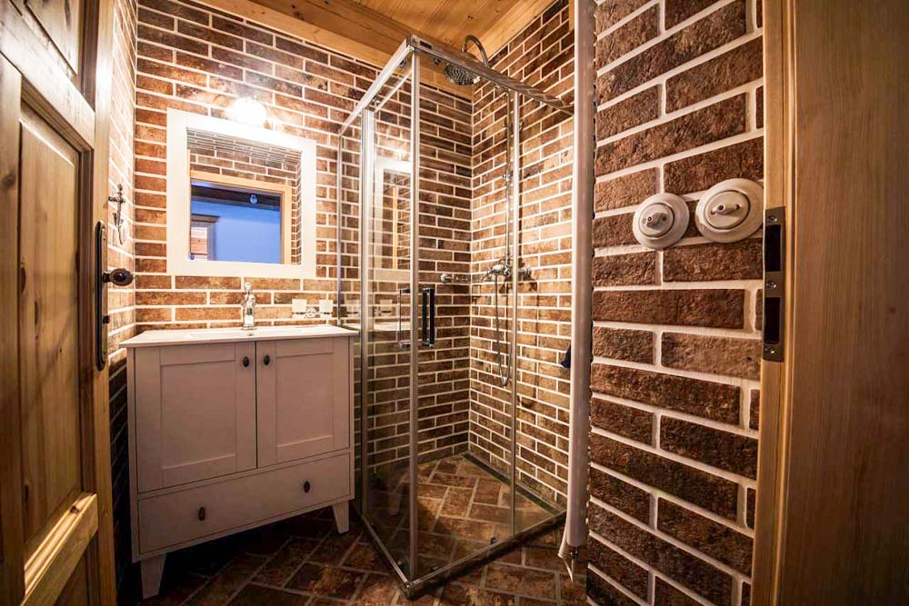 Každá z chalup disponuje dvěma koupelnami a dvěma toaletami, nechybí ani sprcha v prostoru bazénu. Interiér je navržen s důrazem na prostor a světlo, díky velkým oknům působí svěže a přívětivě. V létě potěší terasa se zahradním nábytkem a grilem, na které lze strávit dlouhé večery u společné večeře.